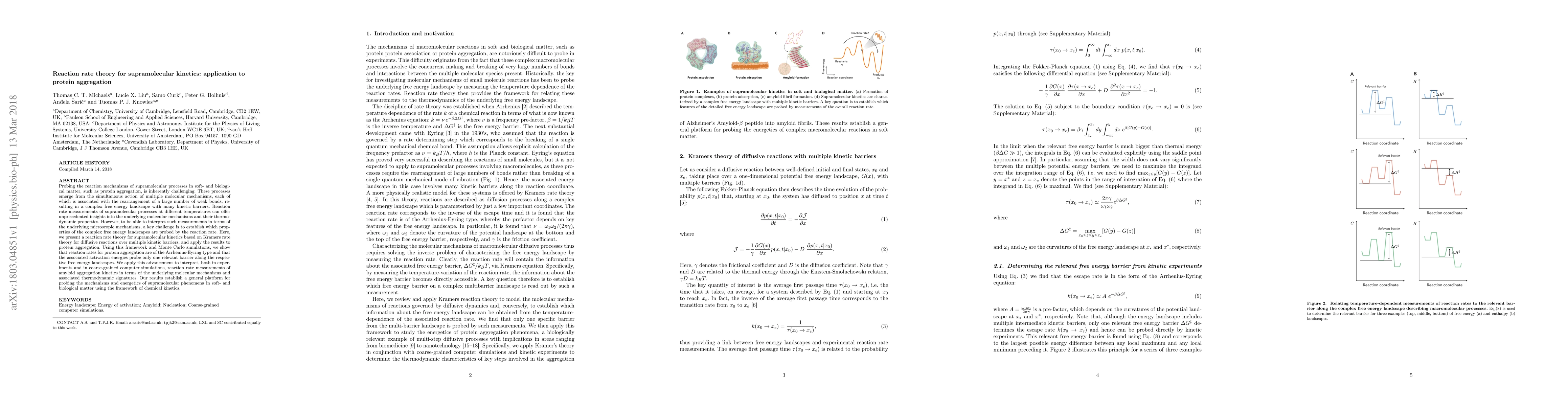This paper develops a reaction rate theory for supramolecular kinetics based on Kramers theory, applying it to protein aggregation to elucidate the underlying mechanisms. It demonstrates that activation energies from reaction rate measurements primarily reflect a single relevant barrier in the free energy landscape, providing a platform for understanding supramolecular processes in complex biological systems.