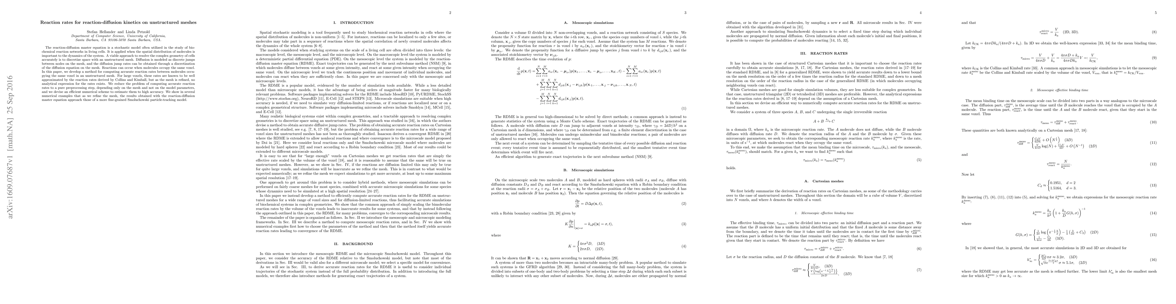 This paper develops a method to compute accurate reaction rates for molecules in an unstructured mesh, essential for modeling biochemical reaction networks where spatial distribution matters. The method achieves high accuracy through an efficient numerical scheme, showing that refined mesh results converge to a more detailed particle-tracking model.