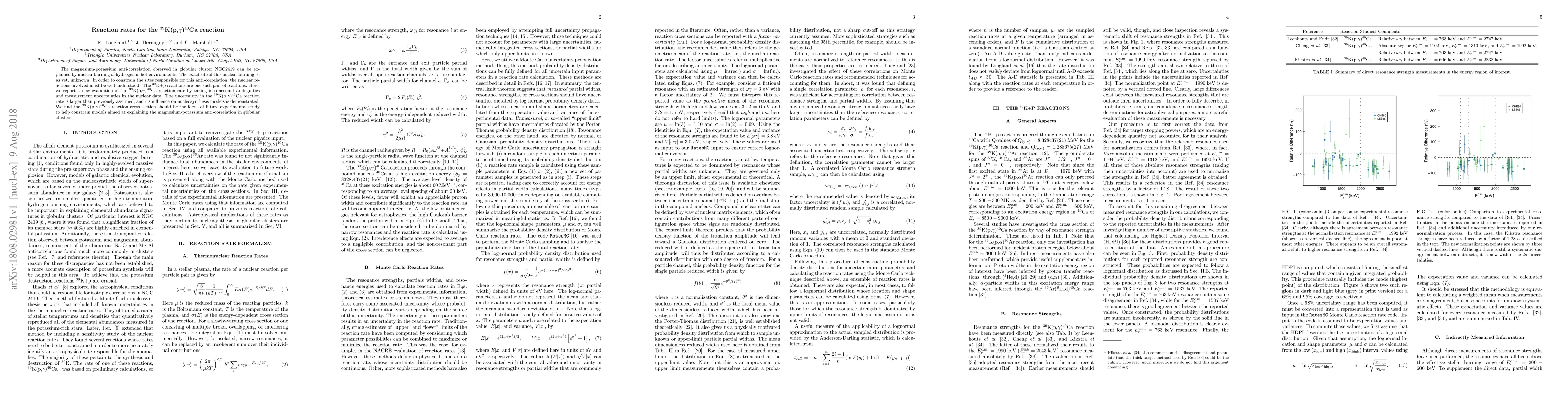 The magnesium-potassium anti-correlation observed in globular cluster NGC2419 can be explained by nuclear burning of hydrogen in hot environments. The exact site of this nuclear burning is, as yet, unknown. In order to constrain the sites responsible for this anti-correlation, the nuclear reactions involved must be well understood. The $^{39}$K+p reactions are one such pair of reactions. Here, we report a new evaluation of the $^{39}$K(p,$\gamma$)$^{40}$Ca reaction rate by taking into account ambiguities and measurement uncertainties in the nuclear data. The uncertainty in the $^{39}$K(p,$\gamma$)$^{40}$Ca reaction rate is larger than previously assumed, and its influence on nucleosynthesis models is demonstrated. We find the $^{39}$K(p,$\gamma$)$^{40}$Ca reaction cross section should be the focus of future experimental study to help constrain models aimed at explaining the magnesium-potassium anti-correlation in globular clusters.