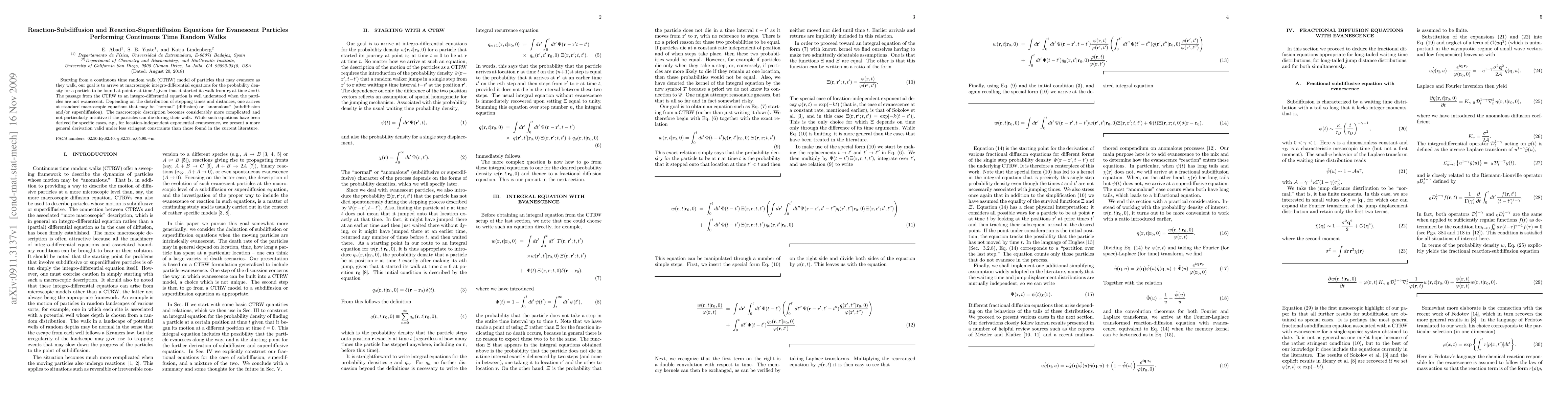 Researchers developed new macroscopic equations to describe particles that can evaporate during their random walks, extending previous findings on diffusion and superdiffusion. These equations provide a more general solution than existing literature, allowing for less stringent constraints on particle evanescence.
