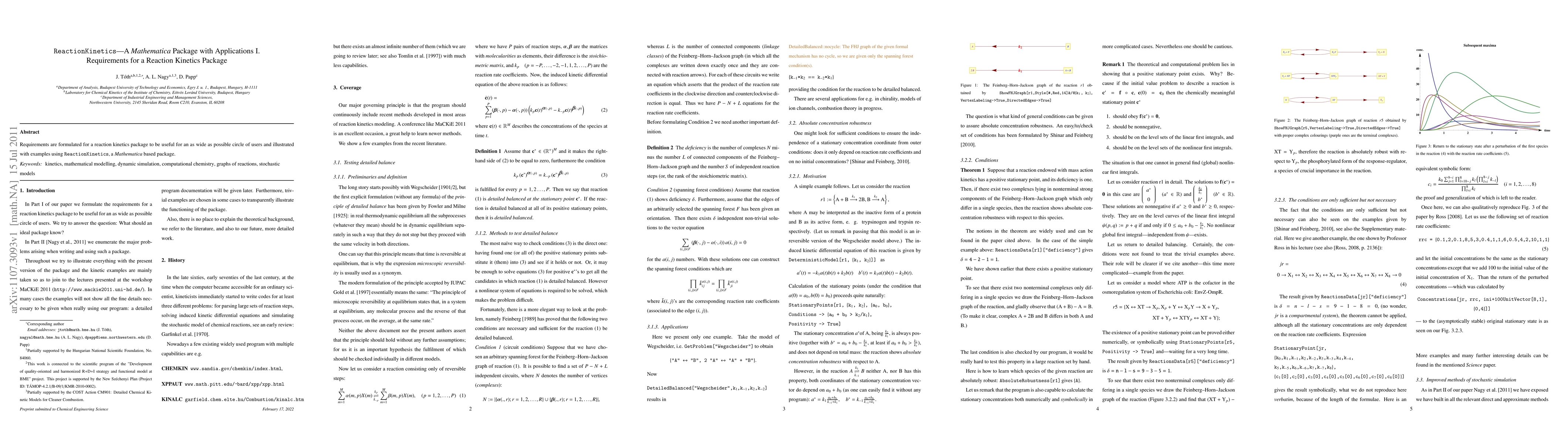 Summary: This paper outlines essential requirements for an effective reaction kinetics software package, aiming for broad usability. It demonstrates these requirements through examples using the ReactionKinetics Mathematica-based package.