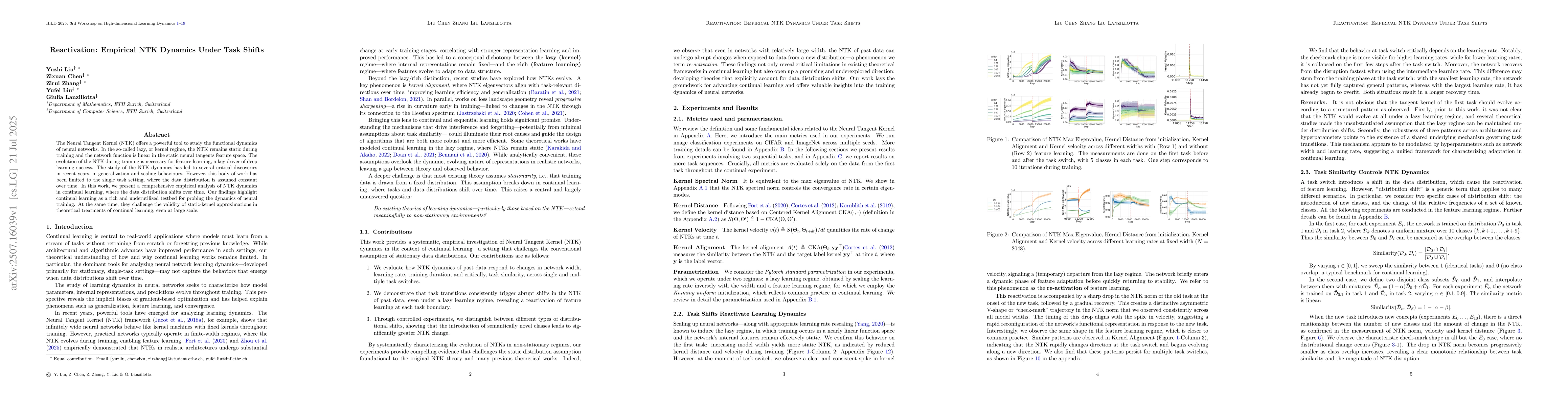 A comprehensive empirical examination of NTK dynamics under task shifts in continual learning settings.