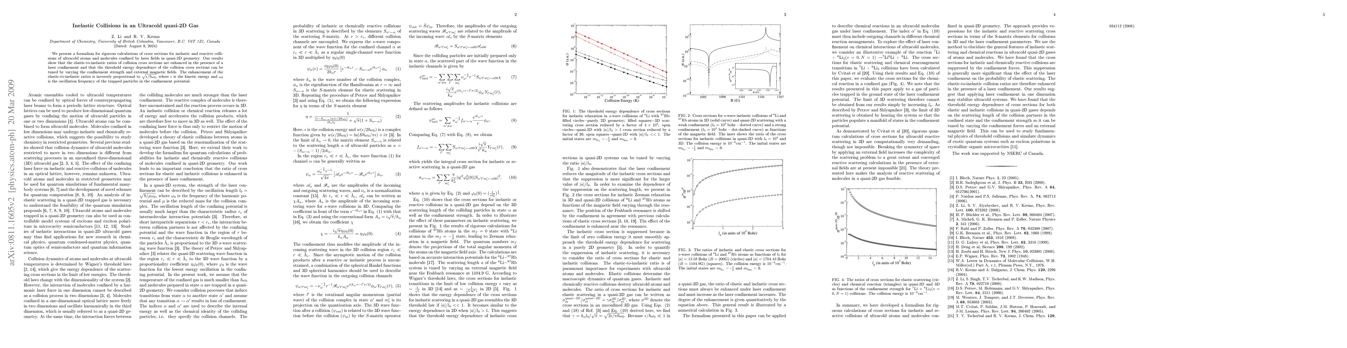 This paper develops a formalism for calculating cross sections of reactive collisions of ultracold atoms and molecules in quasi-2D laser fields, showing enhanced elastic-to-inelastic ratios and tunable threshold energy dependence via laser confinement and magnetic fields. The enhancement is inversely proportional to $\sqrt{\epsilon/\hbar \omega_0}$.