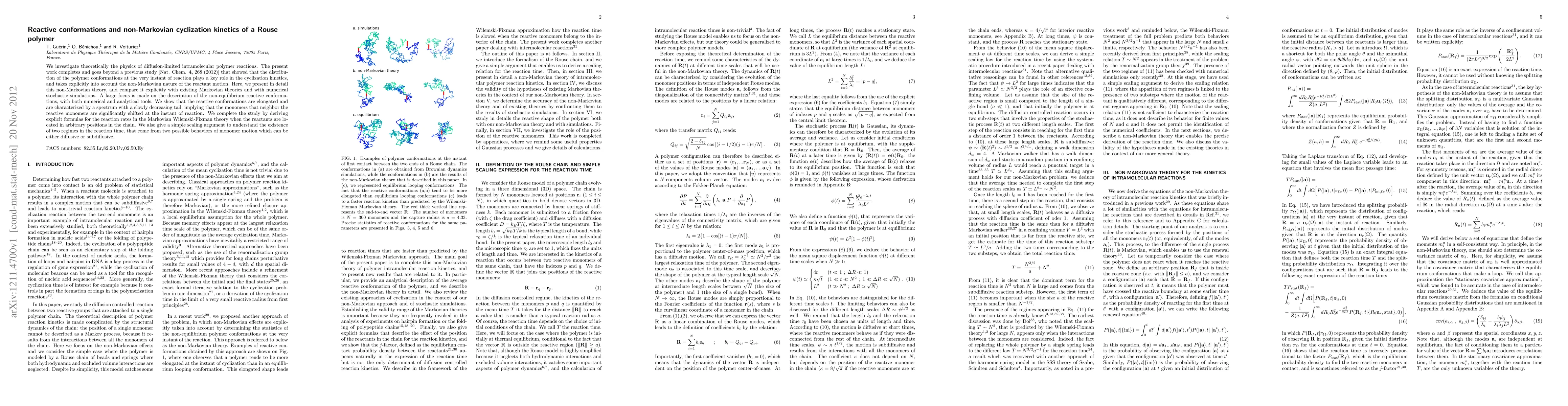 This paper develops a non-Markovian theory to describe the diffusion-limited intramolecular polymer reactions, emphasizing the role of reactive conformations and comparing it with Markovian models. It reveals that reactive conformations are elongated and significantly shift neighboring monomers, leading to two distinct reaction time regimes.