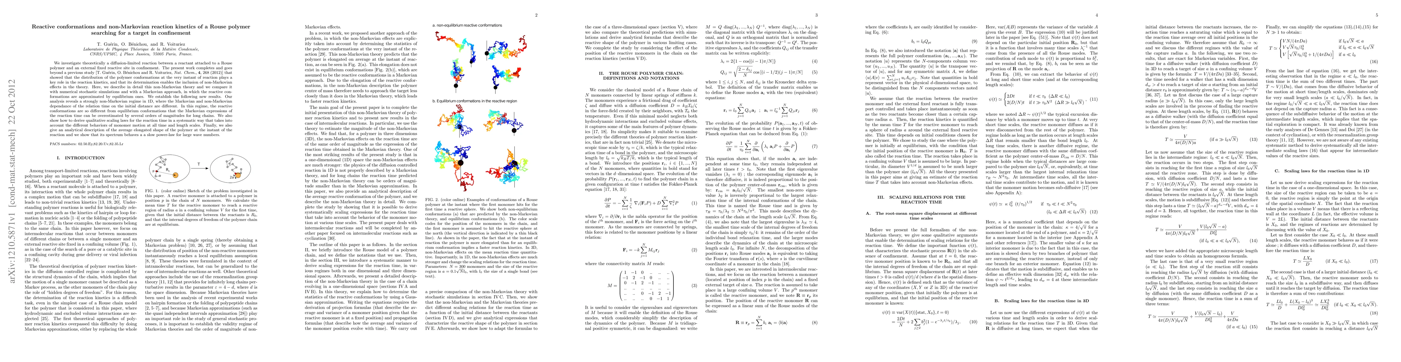 We investigate theoretically a diffusion-limited reaction between a reactant attached to a Rouse polymer and an external fixed reactive site in confinement. The present work completes and goes beyond a previous study [T. Gu\'erin, O. B\'enichou and R. Voituriez, Nat. Chem., 4, 268 (2012)] that showed that the distribution of the polymer conformations at the very instant of reaction plays a key role in the reaction kinetics, and that its determination enables the inclusion of non-Markovian effects in the theory. Here, we describe in detail this non-Markovian theory and we compare it with numerical stochastic simulations and with a Markovian approach, in which the reactive conformations are approximated by equilibrium ones. We establish the following new results. Our analysis reveals a strongly non-Markovian regime in 1D, where the Markovian and non-Markovian dependance of the relation time on the initial distance are different. In this regime, the reactive conformations are so different from equilibrium conformations that the Markovian expressions of the reaction time can be overestimated by several orders of magnitudes for long chains. We also show how to derive qualitative scaling laws for the reaction time in a systematic way that takes into account the different behaviors of monomer motion at all time and length scales. Finally, we also give an analytical description of the average elongated shape of the polymer at the instant of the reaction and we show that its spectrum behaves a a slow power-law for large wave numbers.