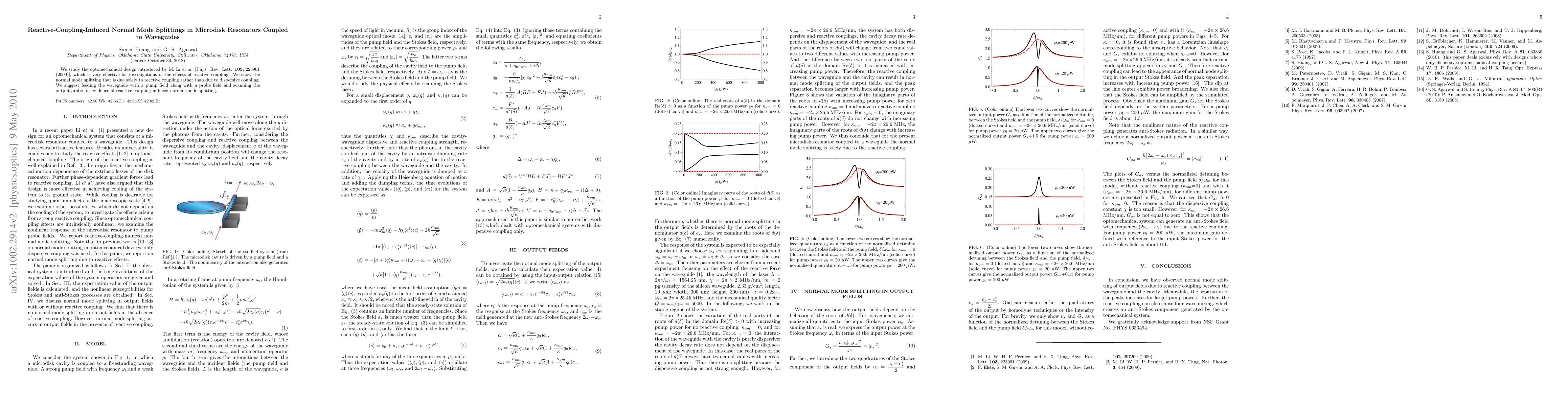 We study the optomechanical design introduced by M. Li et al. [Phys. Rev. Lett. {\bf 103}, 223901 (2009)], which is very effective for investigation of the effects of reactive coupling. We show the normal mode splitting which is due solely to reactive coupling rather than due to dispersive coupling. We suggest feeding the waveguide with a pump field along with a probe field and scanning the output probe for evidence of reactive-coupling-induced normal mode splitting.