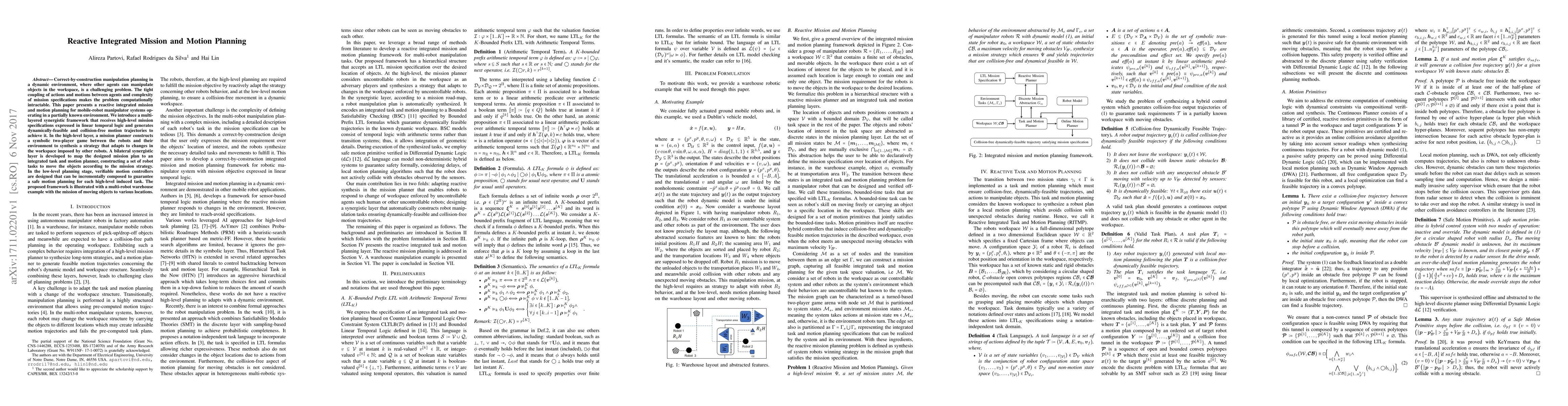 This paper introduces a multi-layered framework for reactive integrated mission and motion planning for mobile-robot manipulators in dynamic environments. It combines high-level mission planning with low-level motion control to generate collision-free trajectories, illustrated through a multi-robot warehouse scenario.