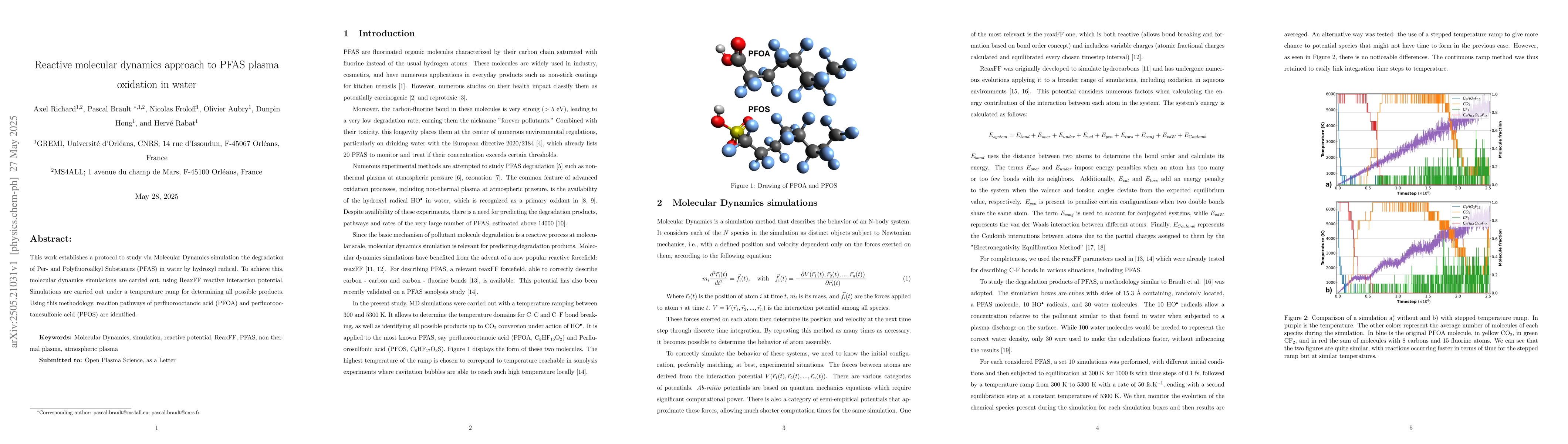 The development and application of a ReaxFF-based reactive molecular dynamics approach for PFAS plasma oxidation in water.