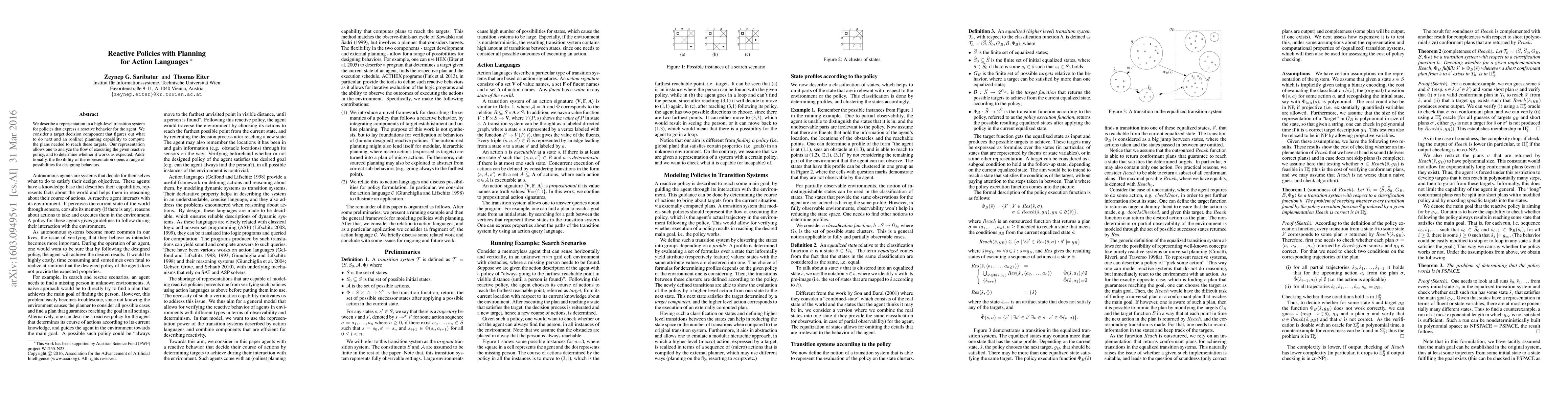 This paper introduces a high-level transition system for representing reactive policies in action languages, enabling analysis of policy execution and design of behaviors.