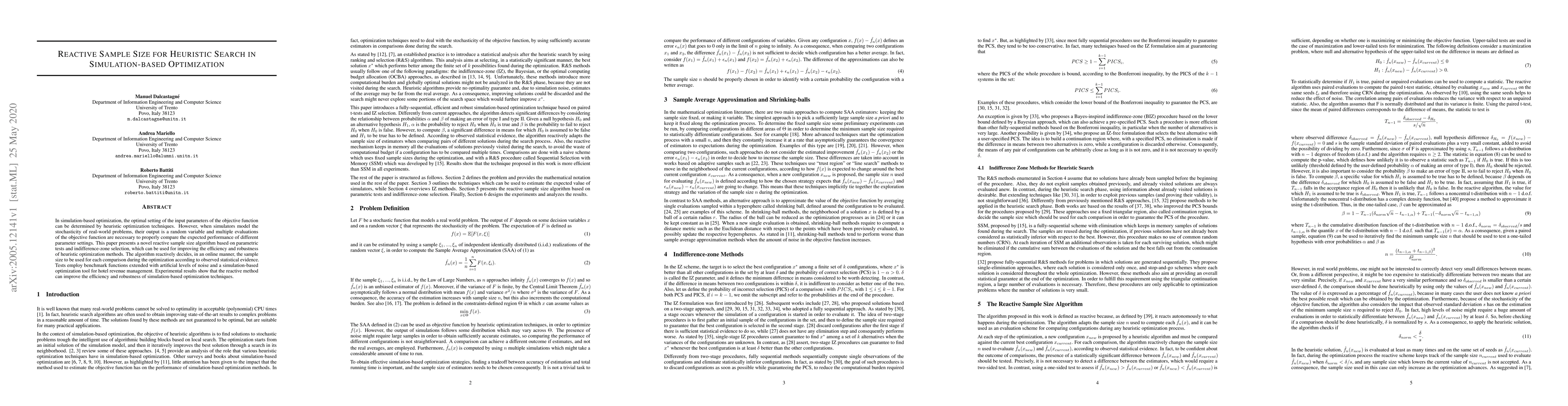 In simulation-based optimization, the optimal setting of the input parameters of the objective function can be determined by heuristic optimization techniques. However, when simulators model the stochasticity of real-world problems, their output is a random variable and multiple evaluations of the objective function are necessary to properly compare the expected performance of different parameter settings. This paper presents a novel reactive sample size algorithm based on parametric tests and indifference-zone selection, which can be used for improving the efficiency and robustness of heuristic optimization methods. The algorithm reactively decides, in an online manner, the sample size to be used for each comparison during the optimization according to observed statistical evidence. Tests employ benchmark functions extended with artificial levels of noise and a simulation-based optimization tool for hotel revenue management. Experimental results show that the reactive method can improve the efficiency and robustness of simulation-based optimization techniques.