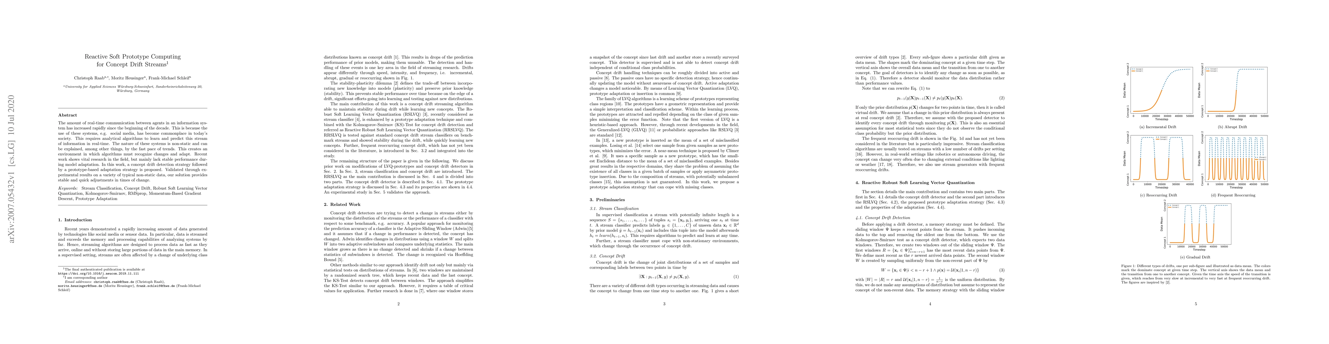 The amount of real-time communication between agents in an information system has increased rapidly since the beginning of the decade. This is because the use of these systems, e. g. social media, has become commonplace in today's society. This requires analytical algorithms to learn and predict this stream of information in real-time. The nature of these systems is non-static and can be explained, among other things, by the fast pace of trends. This creates an environment in which algorithms must recognize changes and adapt. Recent work shows vital research in the field, but mainly lack stable performance during model adaptation. In this work, a concept drift detection strategy followed by a prototype-based adaptation strategy is proposed. Validated through experimental results on a variety of typical non-static data, our solution provides stable and quick adjustments in times of change.