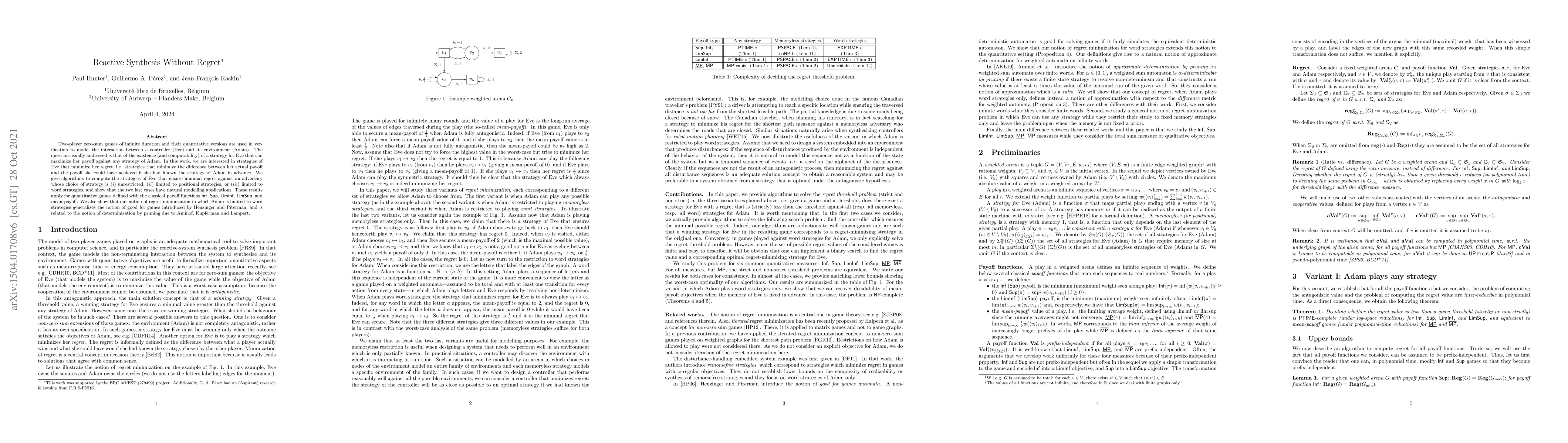 This research presents algorithms for computing strategies in two-player games that minimize a controller's regret against an adversary. The strategies are designed for various adversary constraints: unrestricted, positional, and word strategies. The work also establishes connections between these strategies and other existing problems in the literature.