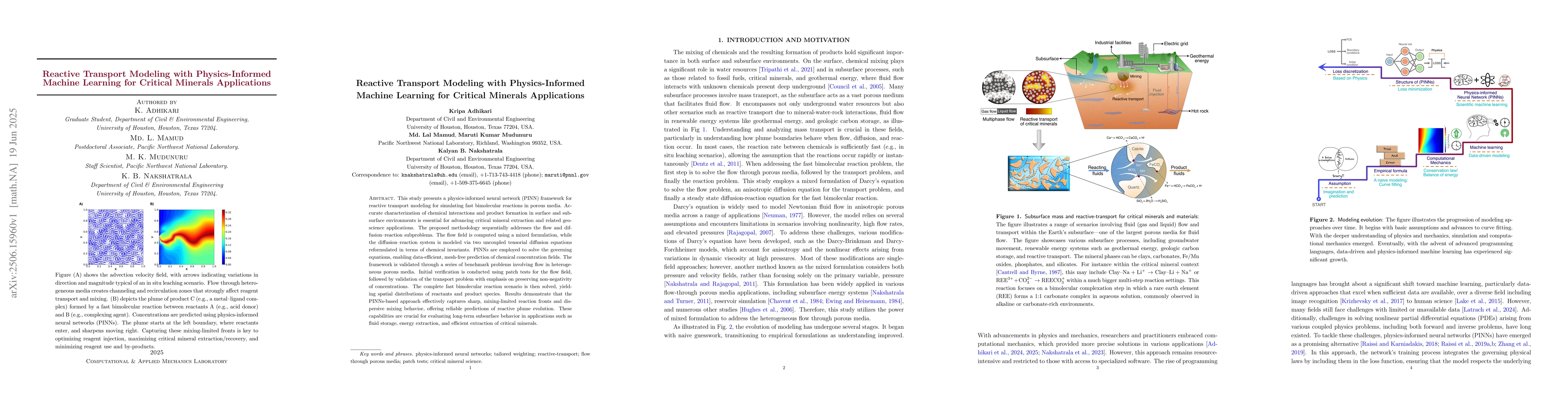 This research introduces a physics-informed machine learning method, using neural networks, to model reactive transport in porous media. It aims to improve simulation of rapid chemical reactions crucial for critical mineral extraction and geoscience applications.