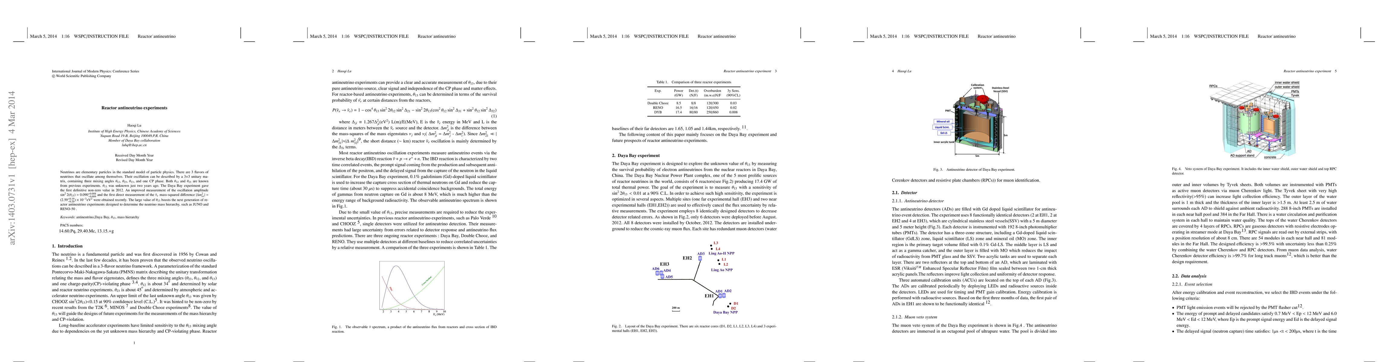 Neutrinos are elementary particles in the standard model of particle physics. There are 3 flavors of neutrinos that oscillate among themselves. Their oscillation can be described by a 3$\times$3 unitary matrix, containing three mixing angles $\theta_{12}$, $\theta_{23}$, $\theta_{13}$, and one CP phase. Both $\theta_{12}$ and $\theta_{23}$ are known from previous experiments. $\theta_{13}$ was unknown just two years ago. The Daya Bay experiment gave the first definitive non-zero value in 2012. An improved measurement of the oscillation amplitude $\sin^{2}2(\theta_{13})$ = $0.090^{+0.008}_{-0.009}$ and the first direct measurement of the $\bar\nu_{e}$ mass-squared difference $\mid$$\Delta m^2_{ee}$$\mid$ = $(2.59^{+0.19}_{-0.20})\times10^{-3} \rm eV^{2}$ were obtained recently. The large value of $\theta_{13}$ boosts the next generation of reactor antineutrino experiments designed to determine the neutrino mass hierarchy, such as JUNO and RENO-50 .