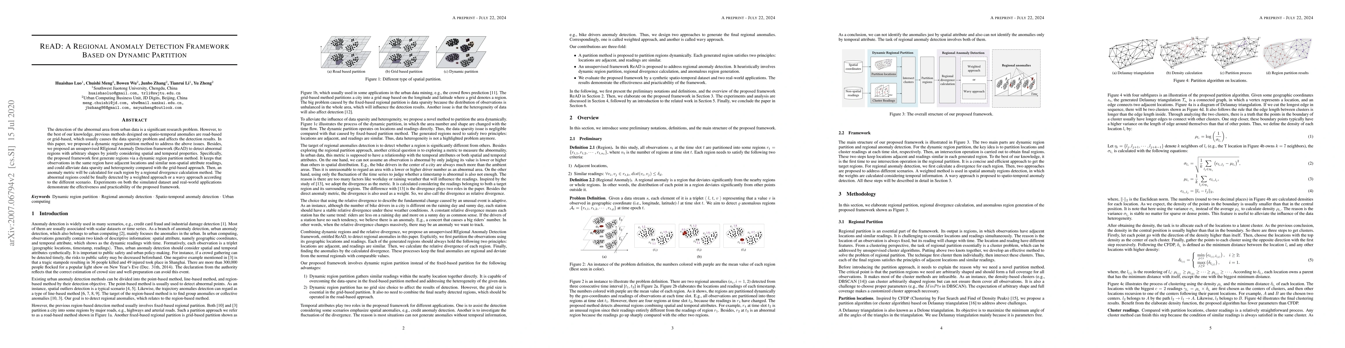 The detection of the abnormal area from urban data is a significant research problem. However, to the best of our knowledge, previous methods designed on spatio-temporal anomalies are road-based or grid-based, which usually causes the data sparsity problem and affects the detection results. In this paper, we proposed a dynamic region partition method to address the above issues. Besides, we proposed an unsupervised REgional Anomaly Detection framework (ReAD) to detect abnormal regions with arbitrary shapes by jointly considering spatial and temporal properties. Specifically, the proposed framework first generate regions via a dynamic region partition method. It keeps that observations in the same region have adjacent locations and similar non-spatial attribute readings, and could alleviate data sparsity and heterogeneity compared with the grid-based approach. Then, an anomaly metric will be calculated for each region by a regional divergence calculation method. The abnormal regions could be finally detected by a weighted approach or a wavy approach according to the different scenario. Experiments on both the simulated dataset and real-world applications demonstrate the effectiveness and practicability of the proposed framework.