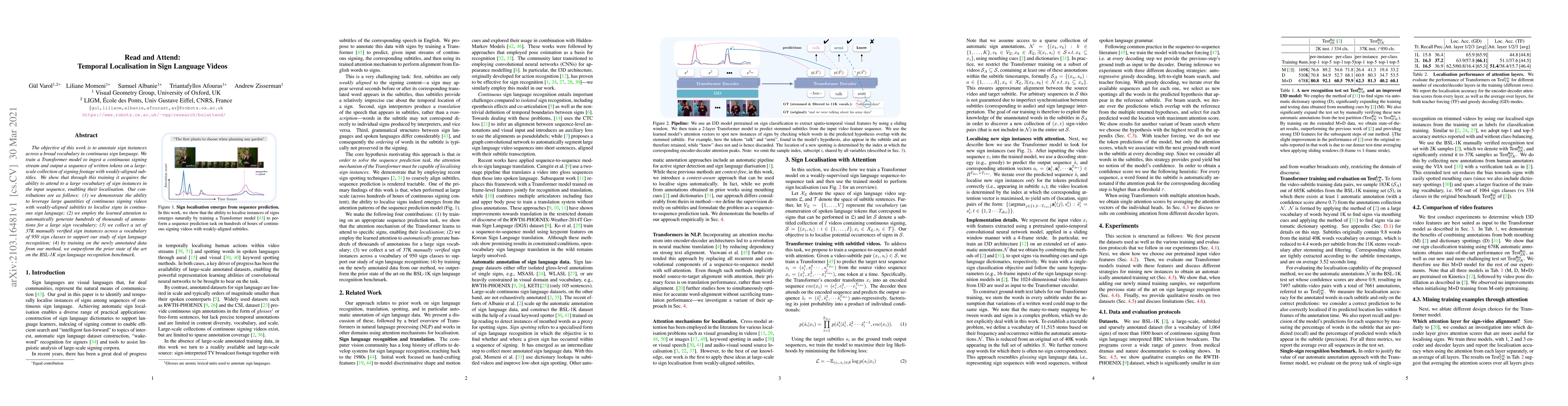 This paper trains a Transformer model to localize sign instances across a broad vocabulary in continuous sign language videos using weakly-aligned subtitles. It demonstrates improved sign language recognition performance on the BSL-1K benchmark by leveraging large quantities of annotated data.