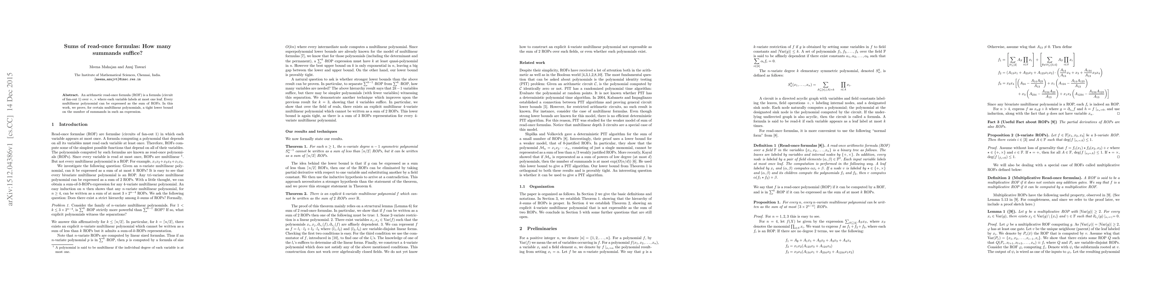 This paper investigates the minimum number of summands required to express certain multilinear polynomials using arithmetic read-once formulas (ROFs), proving a tight lower bound for these polynomials. The study focuses on the efficiency of ROF representations in computational algebra.