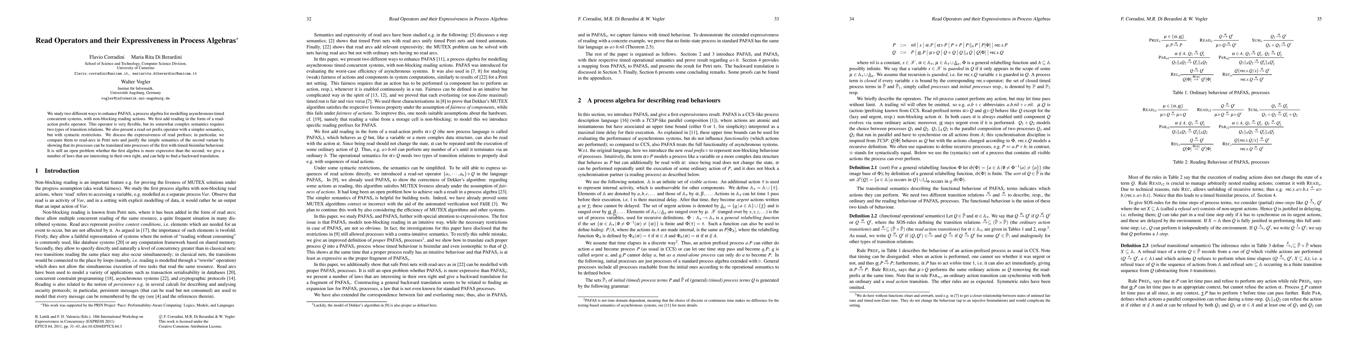This paper explores two enhancements to PAFAS, a process algebra for asynchronous timed systems, with non-blocking read actions: a flexible but complex read-action prefix operator and a simpler read-set prefix operator. It compares their expressiveness and shows that the second can be translated into the first with equivalent timed-bisimilar behavior.