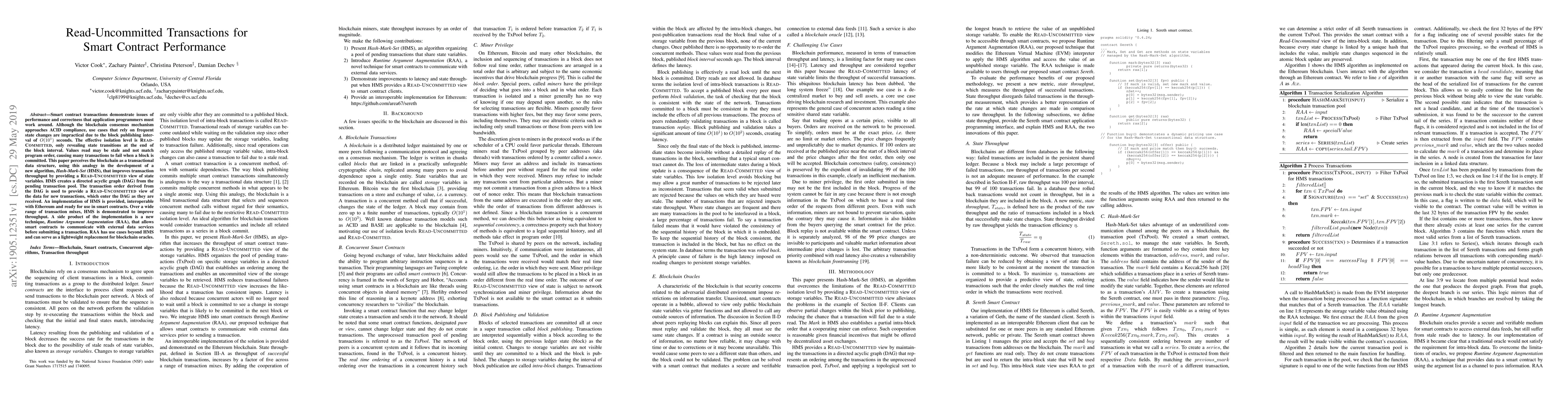 This paper proposes the Hash-Mark-Set (HMS) algorithm to enhance smart contract transaction throughput by providing a Read-Uncommitted view of state variables, addressing performance issues in blockchain transactions. HMS creates a directed acyclic graph from the pending transaction pool to determine transaction order, improving throughput and introducing Runtime Argument Augmentation (RAA) for external data service communication.