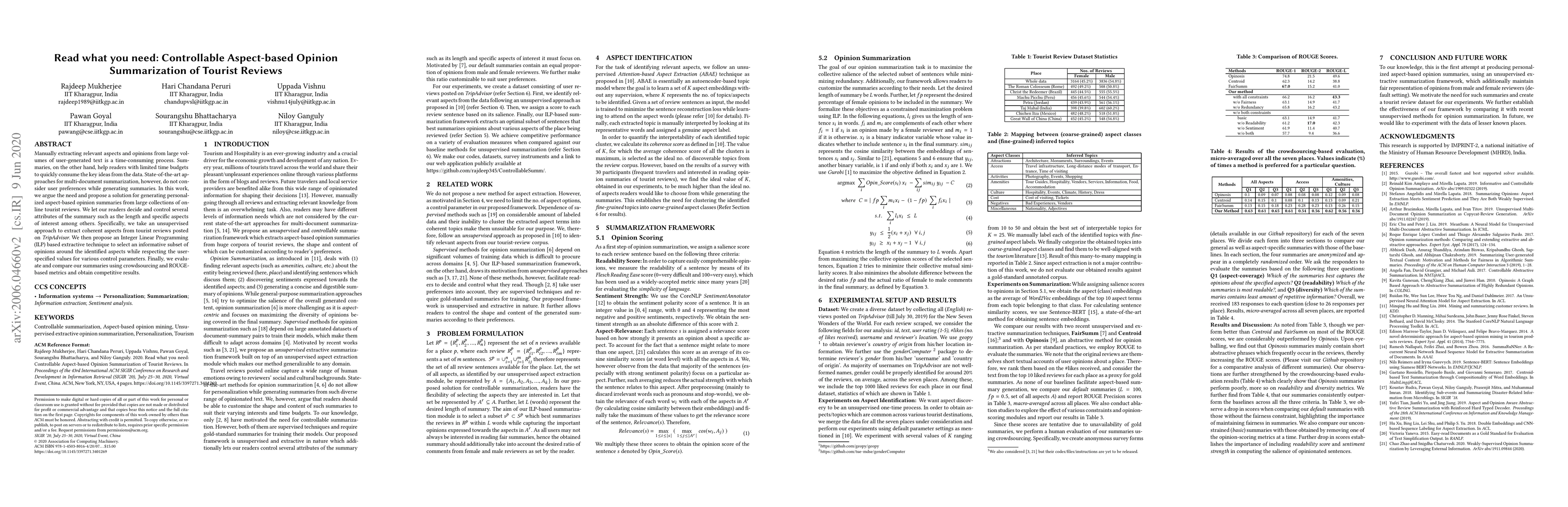 This paper proposes a method to generate personalized summaries from online tourist reviews, allowing users to control aspects of the summary, and presents competitive results using crowdsourcing and ROUGE-based metrics.