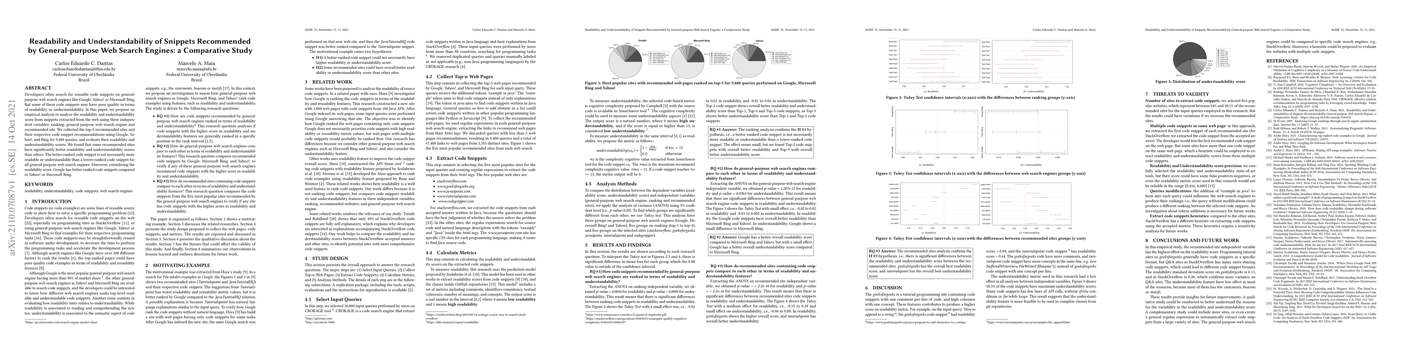 This study evaluates the readability and understandability of code snippets recommended by Google, Yahoo!, and Bing. Findings indicate that while some recommended sites offer higher readability and understandability, the top-ranked snippet is not always the most readable or understandable, and Google generally provides better-ranked code snippets compared to Yahoo! or Bing.
