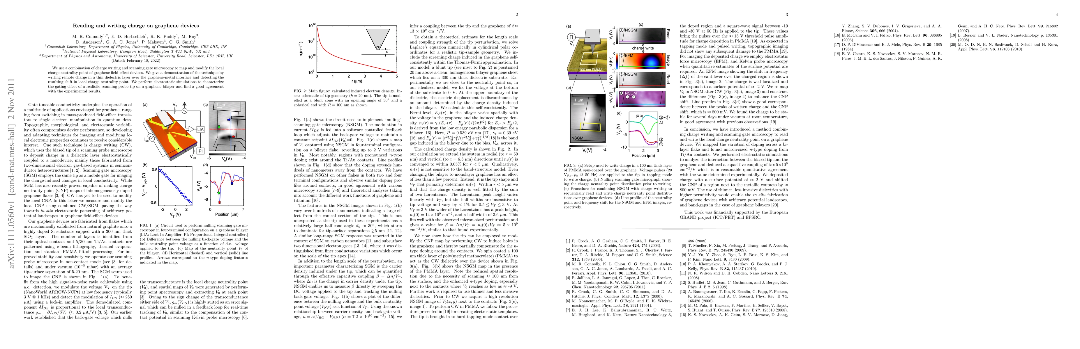 Researchers developed a technique to write and detect charges on graphene devices using scanning gate microscopy and electrostatic simulations. This innovation enables precise control over the local charge neutrality point of graphene field-effect devices.