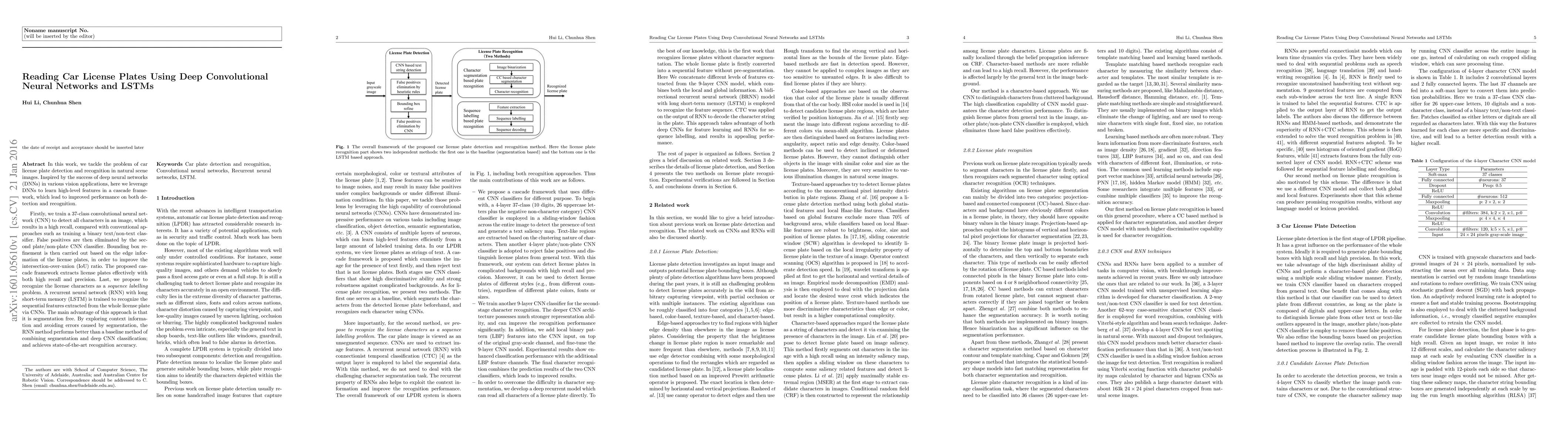 This paper proposes a deep learning framework for car license plate detection and recognition using convolutional neural networks (CNNs) and long short-term memory (LSTM) networks. The cascade CNN approach enhances detection accuracy, while the LSTM-based sequence labeling method achieves superior recognition accuracy without segmentation, outperforming traditional segmentation-based methods.