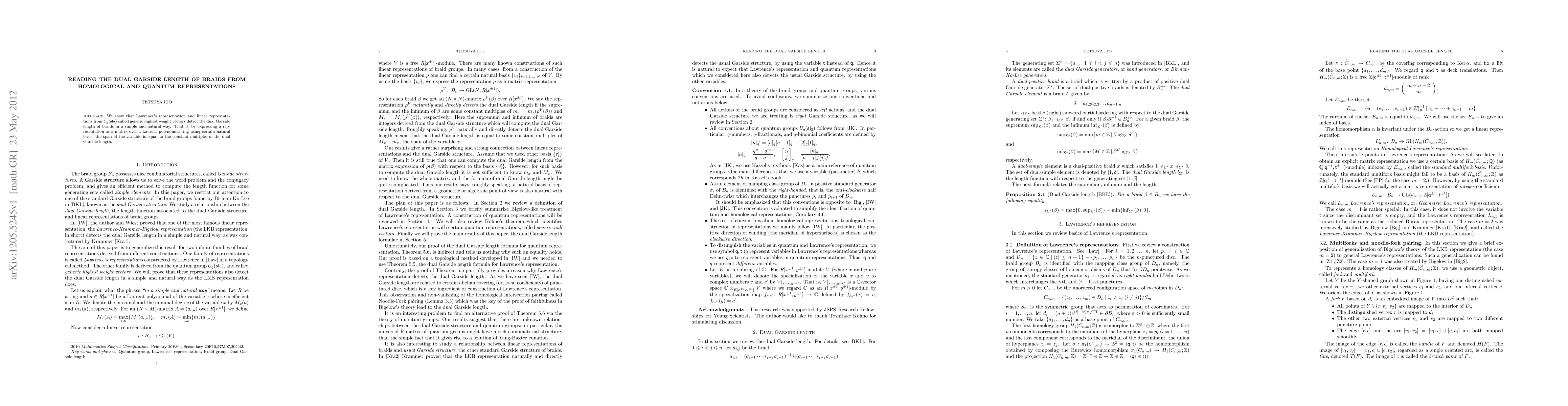 Summary: This paper demonstrates that Lawrence's representation and quantum sl_2 highest weight vectors effectively determine the dual Garside length of braids. By representing these in a matrix over a Laurent polynomial ring, the span of the variable directly corresponds to the dual Garside length.