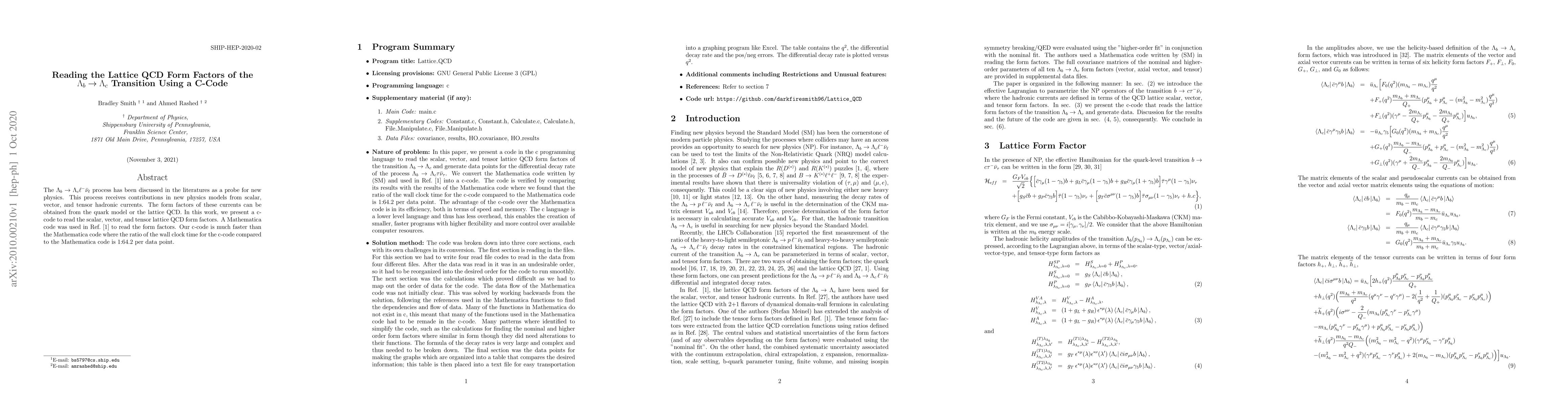 This paper introduces a C-code to efficiently read scalar, vector, and tensor lattice QCD form factors for the $Lambda_b ightarrow Lambda_c$ transition, significantly outperforming a previous Mathematica code with a wall clock time ratio of 1:64.2 per data point.