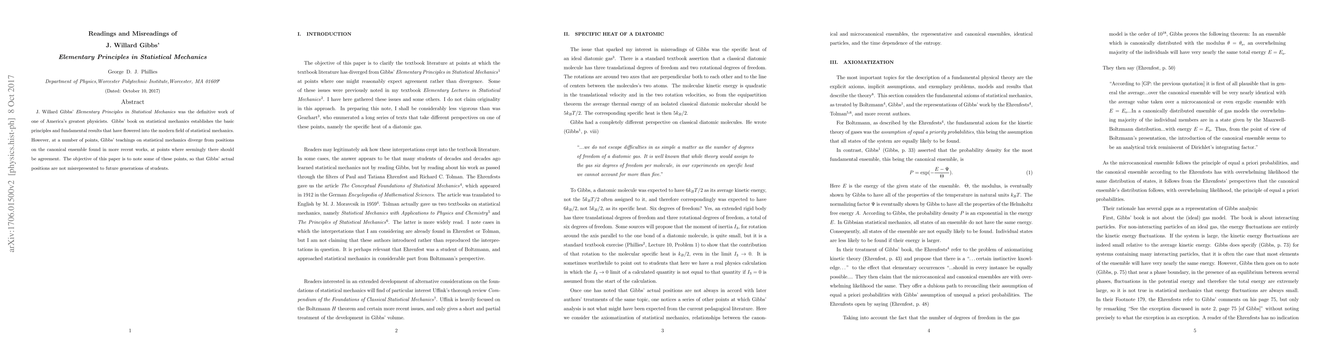 This paper explores discrepancies between J. Willard Gibbs' foundational work on statistical mechanics and later interpretations, aiming to clarify his original positions and prevent misrepresentations in future education. It highlights specific points where Gibbs' teachings diverge from contemporary views on the canonical ensemble.