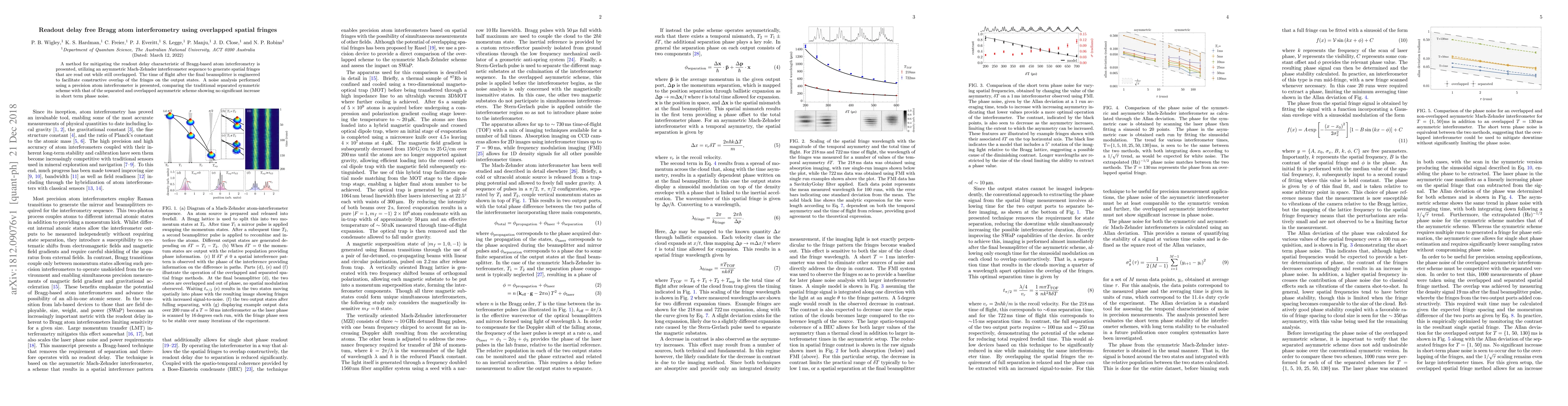 This paper introduces a novel method to eliminate readout delay in Bragg atom interferometry by using an asymmetric Mach-Zehnder interferometer sequence to overlap spatial fringes during readout. The technique maintains low short-term phase noise compared to traditional methods.