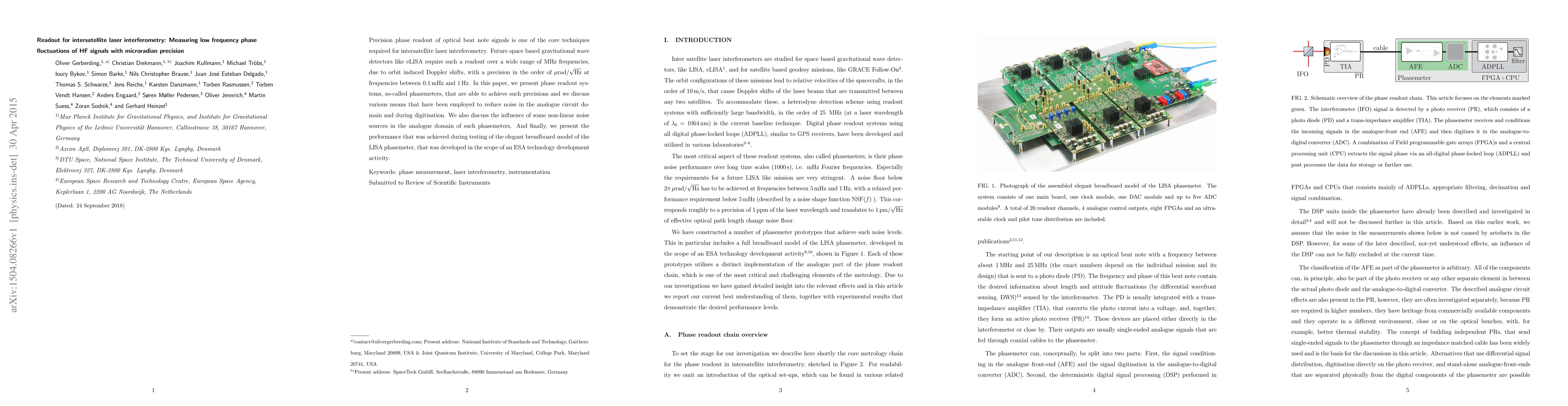 This paper presents phasemeter systems designed for intersatellite laser interferometry, achieving microradian precision phase readout of optical signals over MHz frequencies. The study discusses noise reduction techniques and non-linear noise sources, and reports on the performance of a LISA phasemeter breadboard model developed for ESA.
