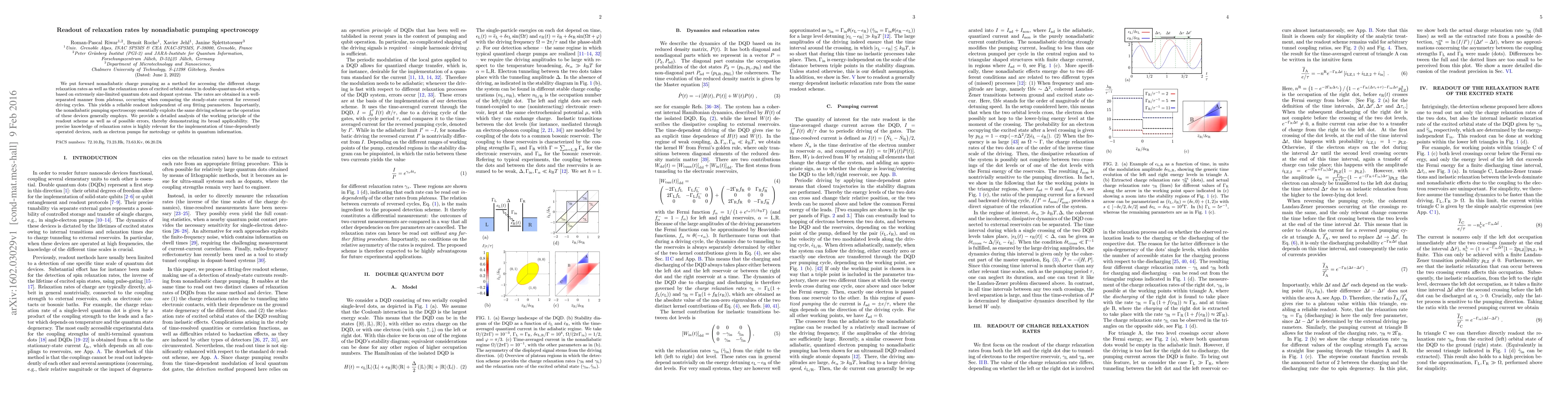 This paper proposes nonadiabatic charge pumping as a method to accurately measure charge relaxation rates in double-quantum-dot systems, providing a reliable readout independent of fitting parameters. The technique is shown to be broadly applicable and relevant for the development of time-dependent devices like electron pumps and qubits.