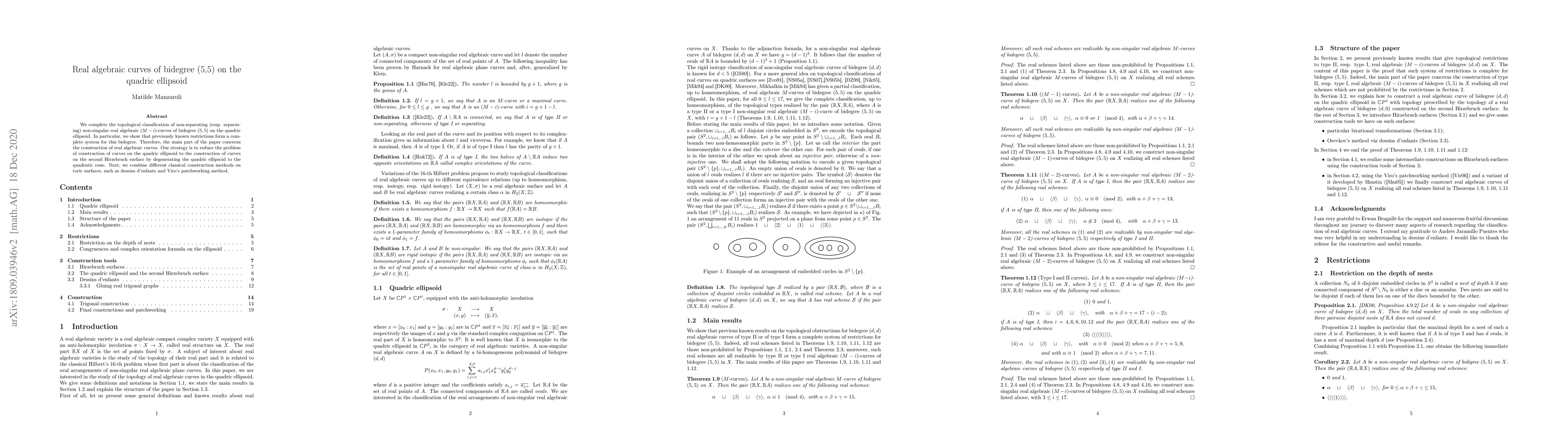 This paper completes the topological classification of real non-singular algebraic curves of bidegree (5,5) on a quadric ellipsoid, demonstrating that existing constraints are sufficient. The authors utilize classical methods like Dessin d'enfants and Viro's patchworking on toric surfaces, after degenerating the ellipsoid to a quadratic cone, to construct these curves.