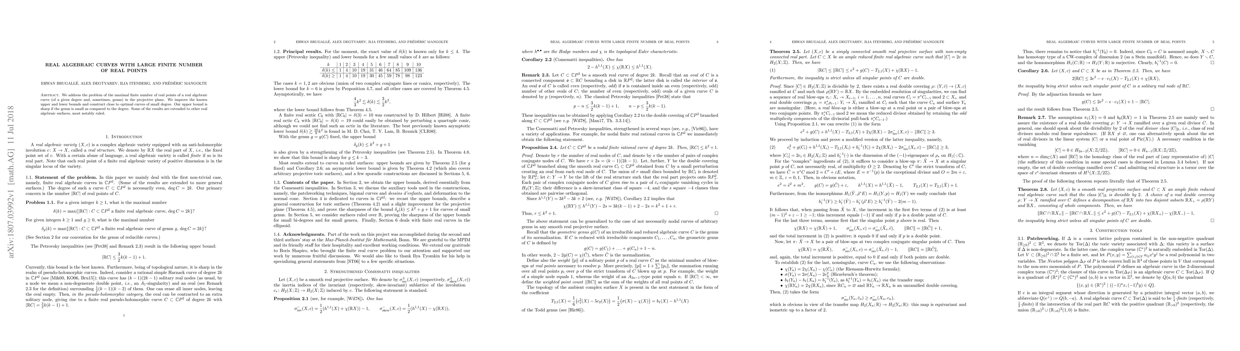 We address the problem of the maximal finite number of real points of a real algebraic curve (of a given degree and, sometimes, genus) in the projective plane. We improve the known upper and lower bounds and construct close to optimal curves of small degree. Our upper bound is sharp if the genus is small as compared to the degree. Some of the results are extended to other real algebraic surfaces, most notably ruled.
