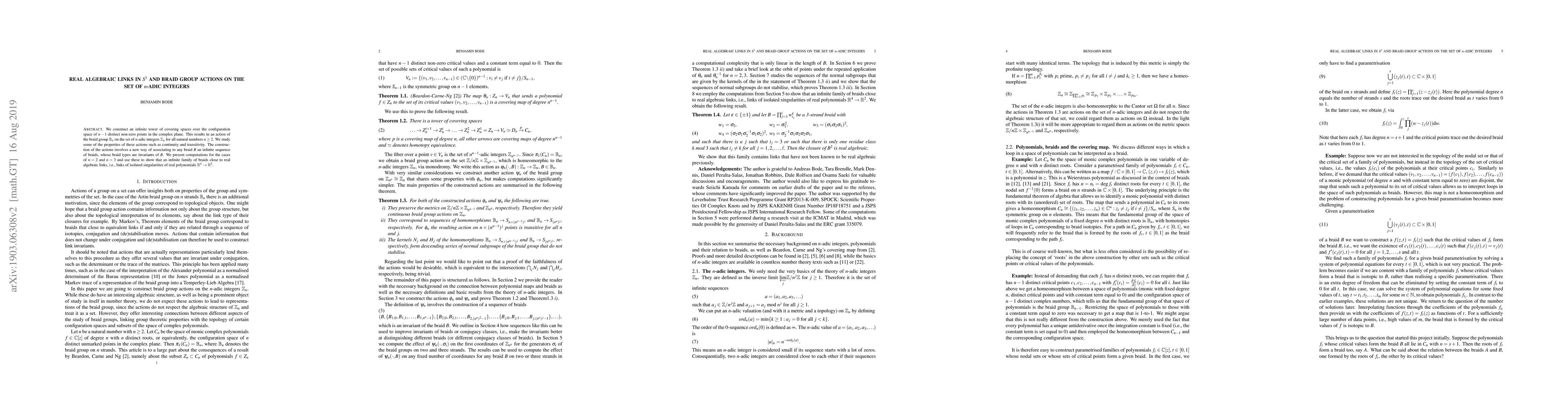 This paper constructs an infinite tower of covering spaces leading to braid group actions on $n$-adic integers $\mathbb{Z}_n$, and studies properties like continuity and transitivity. It associates an infinite sequence of braids to each braid, showing connections to real algebraic links.
