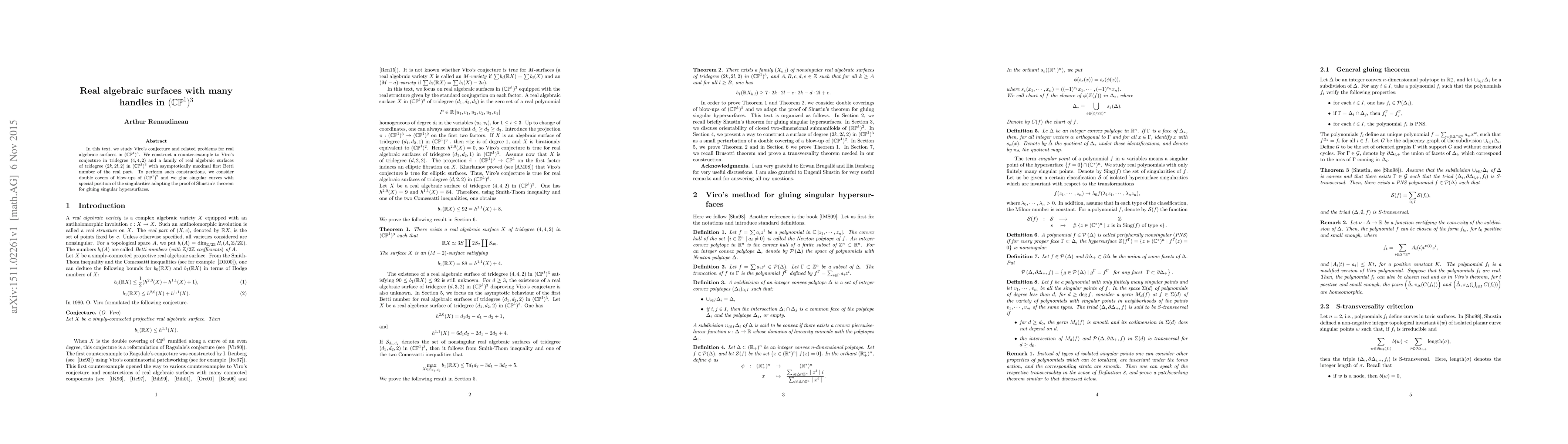 In this text, we study Viro's conjecture and related problems for real algebraic surfaces in $(\mathbb{CP}^1)^3$. We construct a counter-example to Viro's conjecture in tridegree $(4,4,2)$ and a family of real algebraic surfaces of tridegree $(2k,2l,2)$ in $(\mathbb{CP}^1)^3$ with asymptotically maximal first Betti number of the real part. To perform such constructions, we consider double covers of blow-ups of $(\mathbb{CP}^1)^2$ and we glue singular curves with special position of the singularities adapting the proof of Shustin's theorem for gluing singular hypersurfaces.