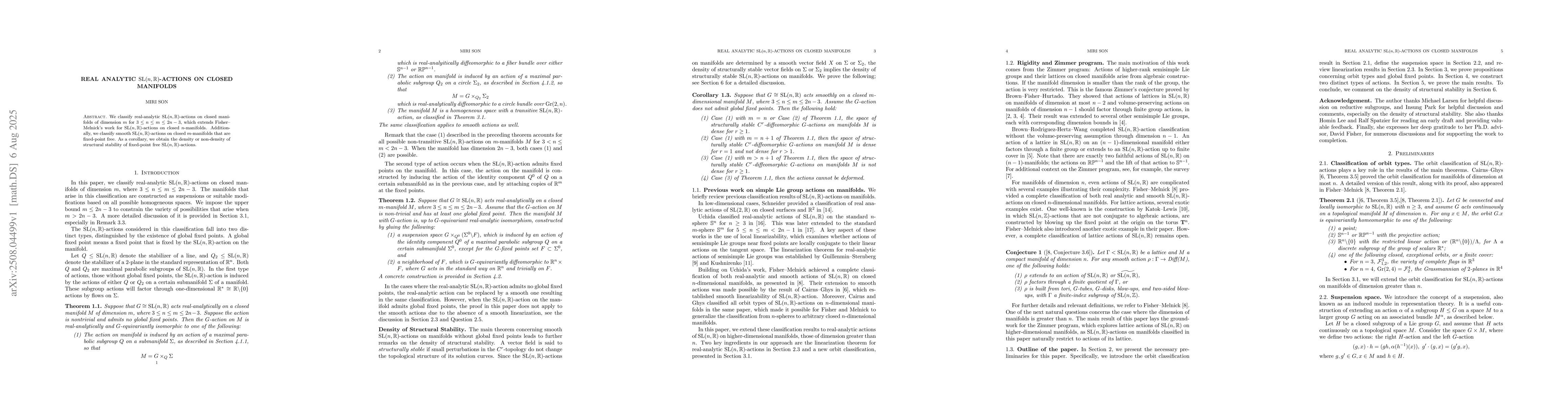 We classify real-analytic $\mathrm{SL}(n,\mathbb{R})$-actions on closed manifolds of dimension m for $3\leq n\leq m\leq2n-3$, which extends Fisher--Melnick's work for $\mathrm{SL}(n,\mathbb{R})$-actions on closed n-manifolds. Additionally, we classify smooth $\mathrm{SL}(n,\mathbb{R})$-actions on closed m-manifolds that are fixed-point free. As a corollary, we obtain the density or non-density of structural stability of fixed-point free $\mathrm{SL}(n,\mathbb{R})$-actions.
