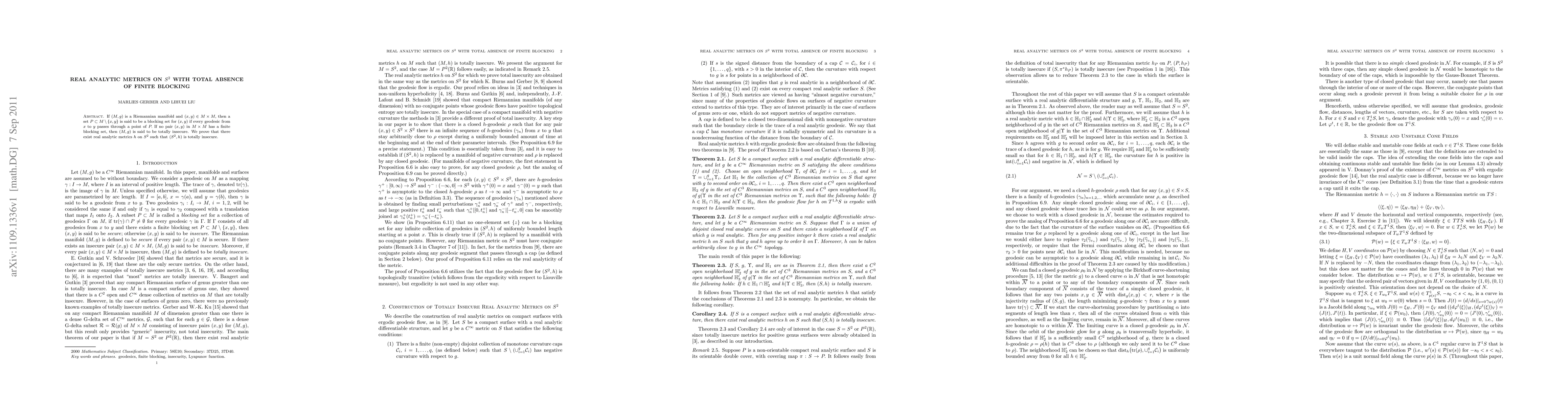 If (M,g) is a Riemannian manifold and x,y are points in M, then a subset P of M\{x,y} is said to be a blocking set for (x,y) if every geodesic from x to y passes through a point of P. If no pair (x,y) in M X M has a finite blocking set, then (M,g) is said to be totally insecure. We prove that there exist real analytic metrics h on S^2 such that (S^2,h) is totally insecure.