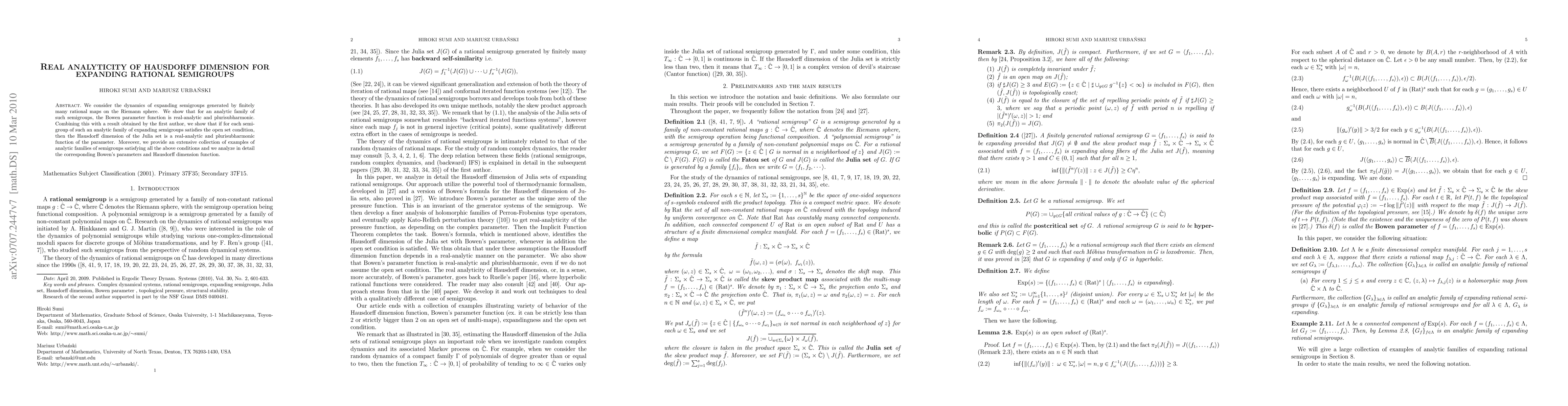 We consider the dynamics of expanding semigroups generated by finitely many rational maps on the Riemann sphere. We show that for an analytic family of such semigroups, the Bowen parameter function is real-analytic and plurisubharmonic. Combining this with a result obtained by the first author, we show that if for each semigroup of such an analytic family of expanding semigroups satisfies the open set condition, then the function of the Hausdorff dimension of the Julia set is real-analytic and plurisubharmonic. Moreover, we provide an extensive collection of classes of examples of analytic families of semigroups satisfying all the above conditions and we analyze in detail the corresponding Bowen's parameters and Hausdorff dimension function.