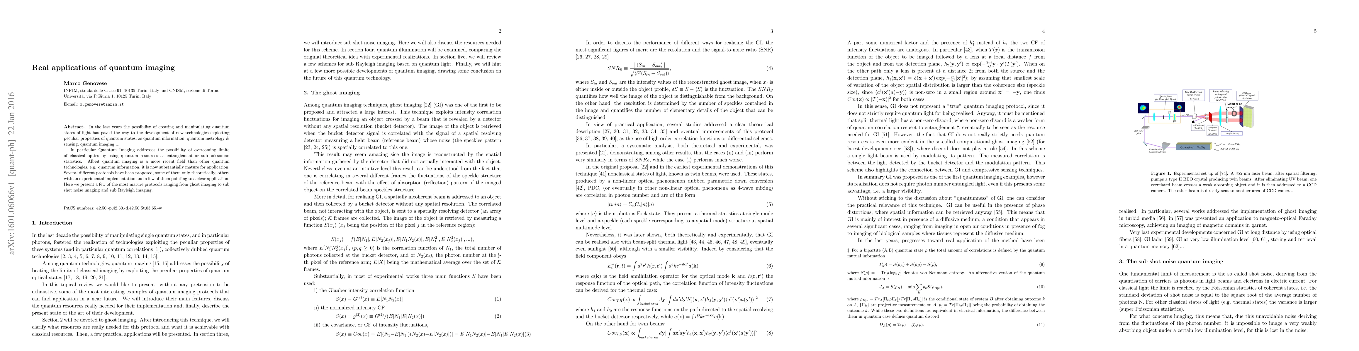 In the last years the possibility of creating and manipulating quantum states of light has paved the way to the development of new technologies exploiting peculiar properties of quantum states, as quantum information, quantum metrology & sensing, quantum imaging ... In particular Quantum Imaging addresses the possibility of overcoming limits of classical optics by using quantum resources as entanglement or sub-poissonian statistics. Albeit quantum imaging is a more recent field than other quantum technologies, e.g. quantum information, it is now substantially mature for application. Several different protocols have been proposed, some of them only theoretically, others with an experimental implementation and a few of them pointing to a clear application. Here we present a few of the most mature protocols ranging from ghost imaging to sub shot noise imaging and sub Rayleigh imaging.