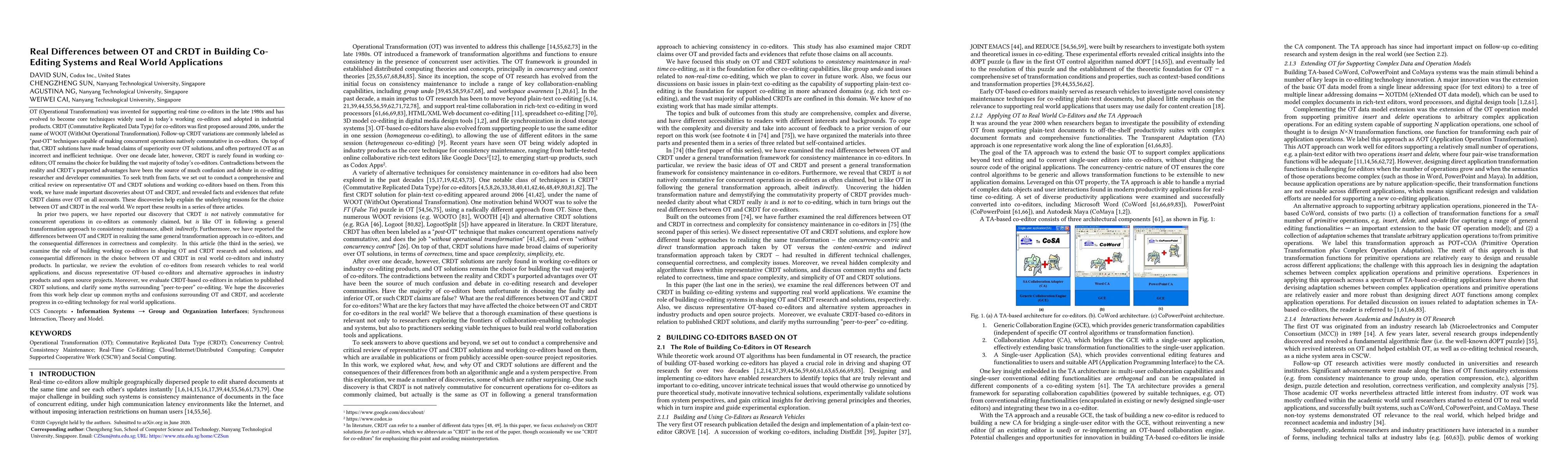 This paper critically examines the differences between Operational Transformation (OT) and Commutative Replicated Data Types (CRDT) in co-editing systems, revealing that despite CRDT claims of superiority, OT remains dominant in industry due to practical considerations and historical development. The study highlights the evolution of co-editing from research to real-world applications, emphasizing the role of practical implementation in shaping the preference for OT over CRDT.