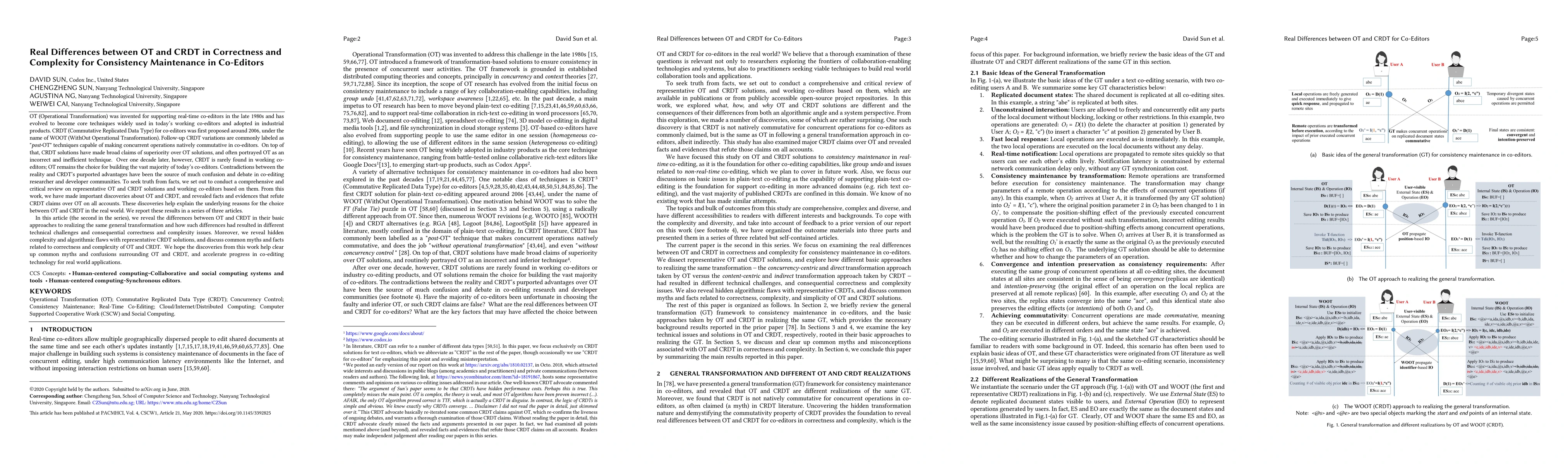 The paper conducts a comprehensive review and critical analysis of representative OT and CRDT solutions and co-editors, comparing their correctness and complexity.