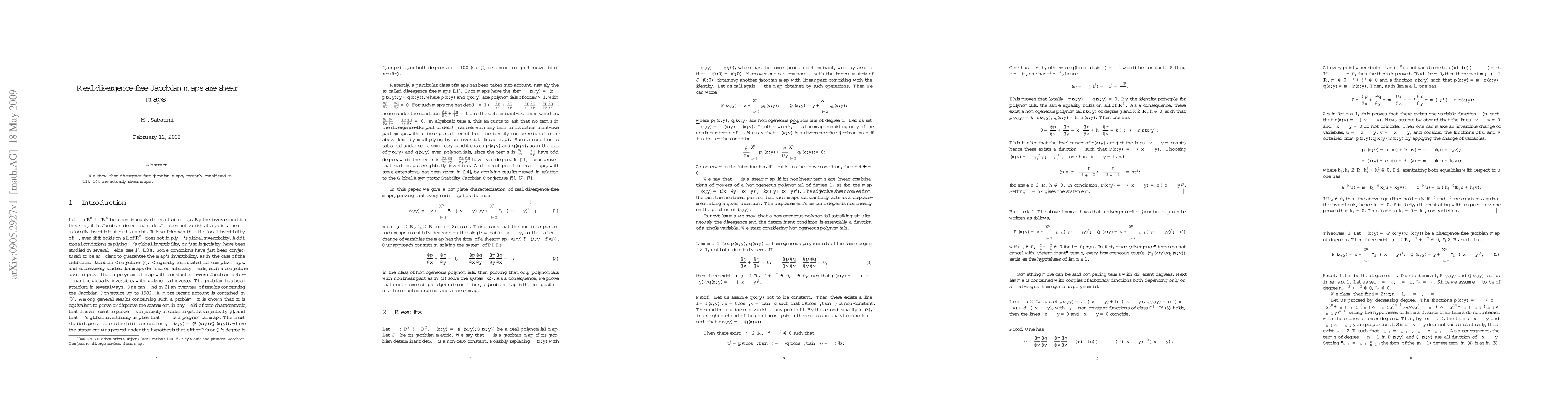 We show that divergence-free jacobian maps, recently considered in \cite{N}, \cite{S}, are actually shear maps.