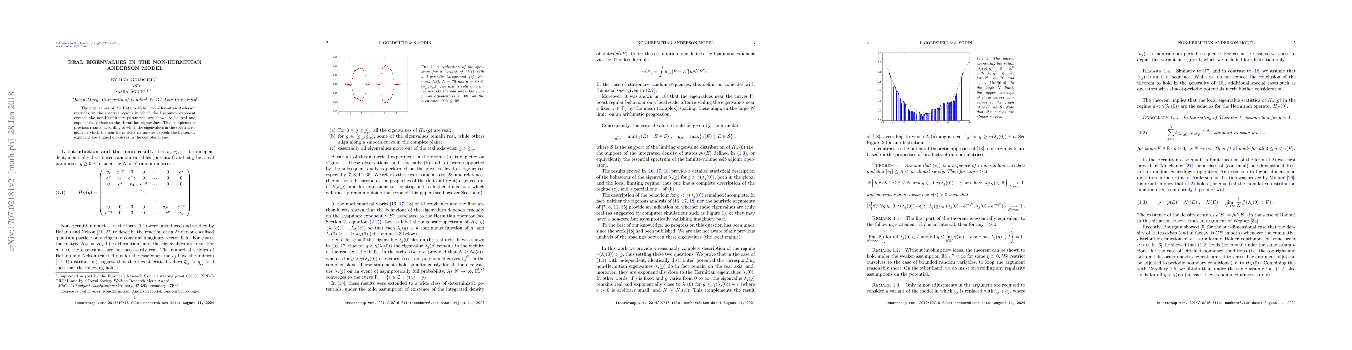 The paper presents a detailed mathematical framework for analyzing the spectral properties of non-Hermitian Anderson models, particularly focusing on the conditions under which eigenvalues remain real.