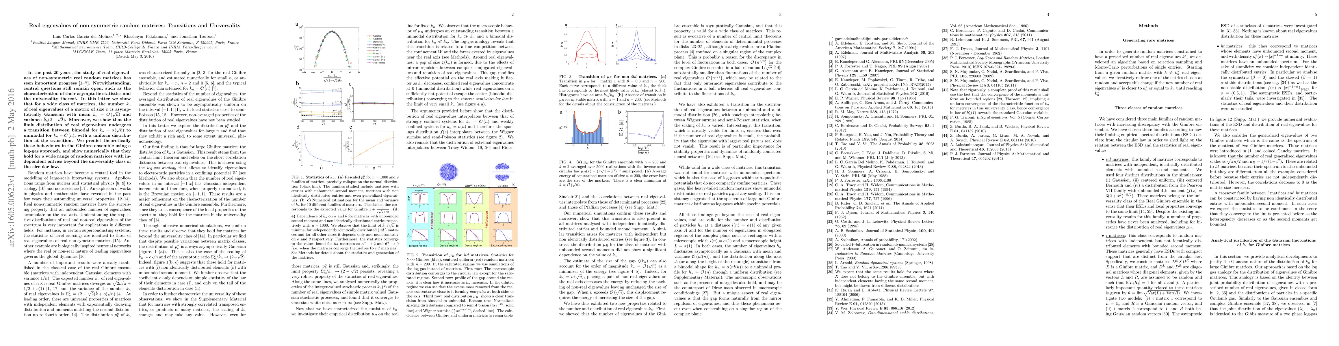 This paper investigates the asymptotic statistics of real eigenvalues in non-symmetric random matrices, demonstrating that the number of real eigenvalues follows an asymptotically Gaussian distribution. It also reveals a transition in the distribution of real eigenvalues from bimodal to unimodal as the number of eigenvalues increases, with a uniform distribution at the transition point.