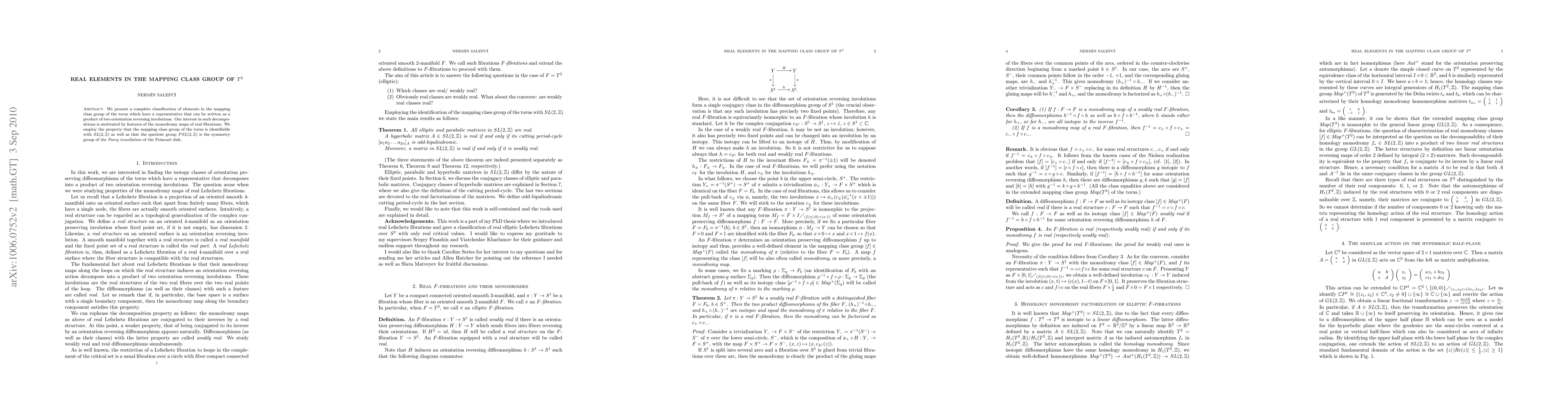 We present a complete classification of elements in the mapping class group of the torus which have a representative that can be written as a product of two orientation reversing involutions. Our interest in such decompositions is motivated by features of the monodromy maps of real fibrations. We employ the property that the mapping class group of the torus is identifiable with $SL(2,\Z)$ as well as that the quotient group $PSL(2,\Z)$ is the symmetry group of the {\em Farey tessellation} of the Poincar\'e disk.