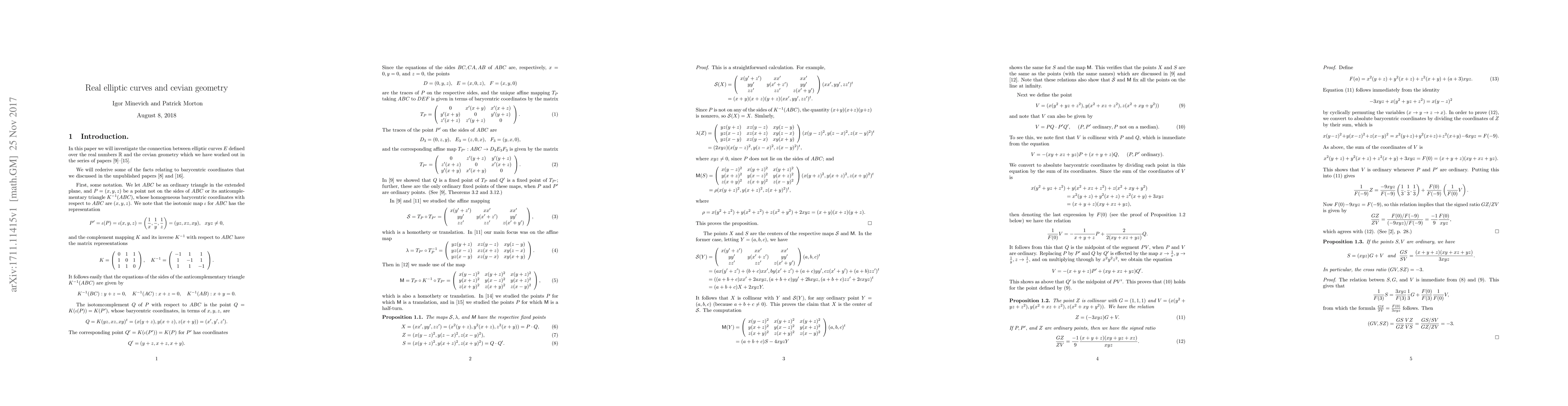 This paper investigates the elliptic curve $E_a$ in geometric normal form and proves that any elliptic curve with a real $j$-invariant is isomorphic to such a curve. It further demonstrates that for $a \notin \{0, -1, -9\}$, the points on $E_a$ (excluding six specific points) can be described using cevian geometry of a triangle.