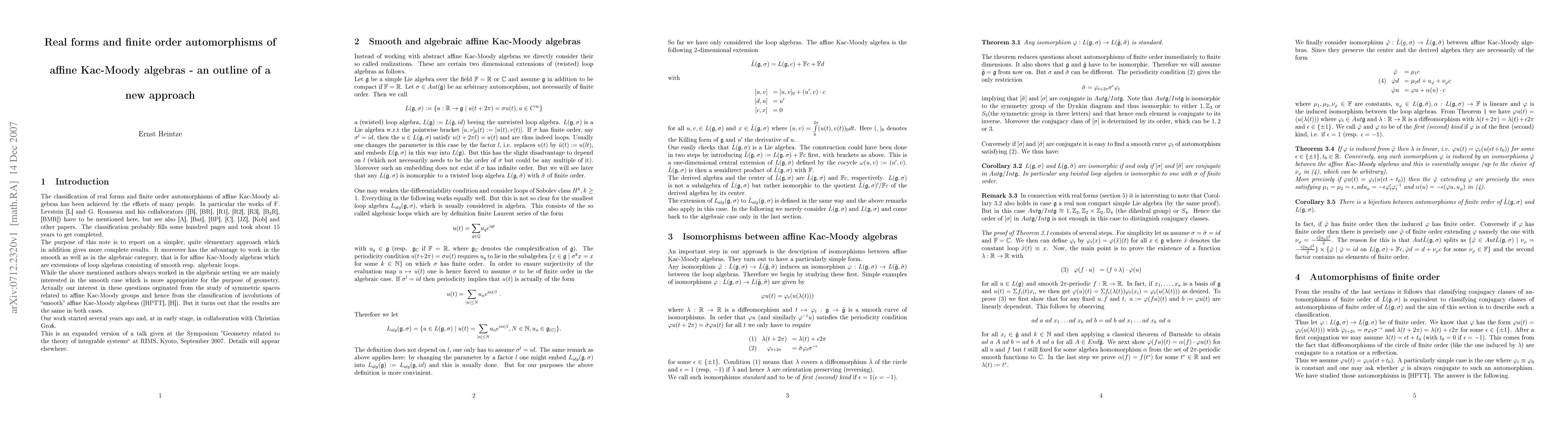We outline a new approach to classify real forms and automorphisms of finite order of affine Kac-Moody algebras.