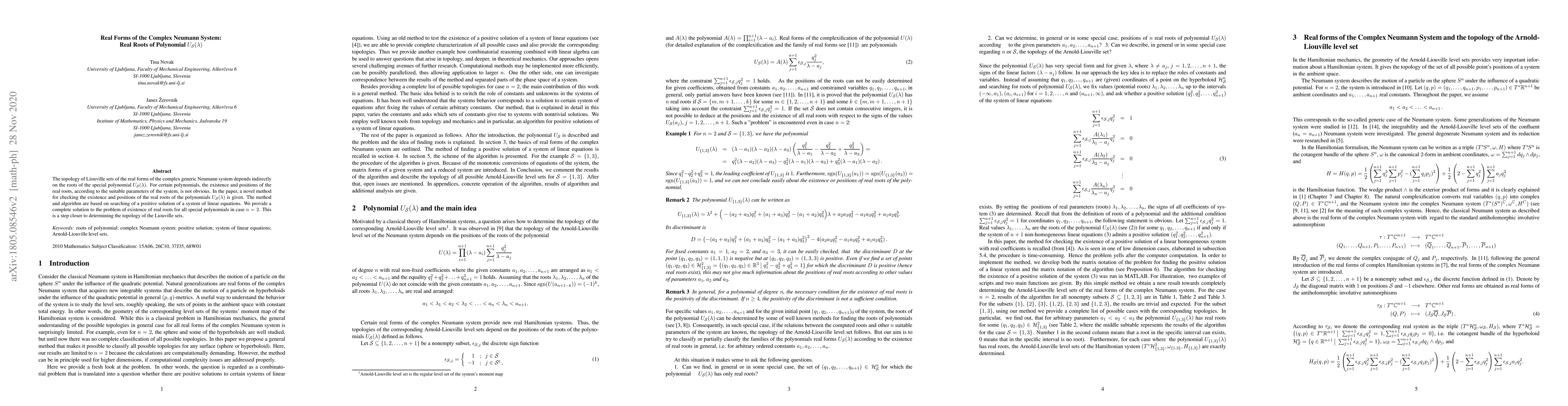 Researchers develop a novel method to find real roots of special polynomials in complex Neumann systems, providing insights into the topology of Liouville sets.